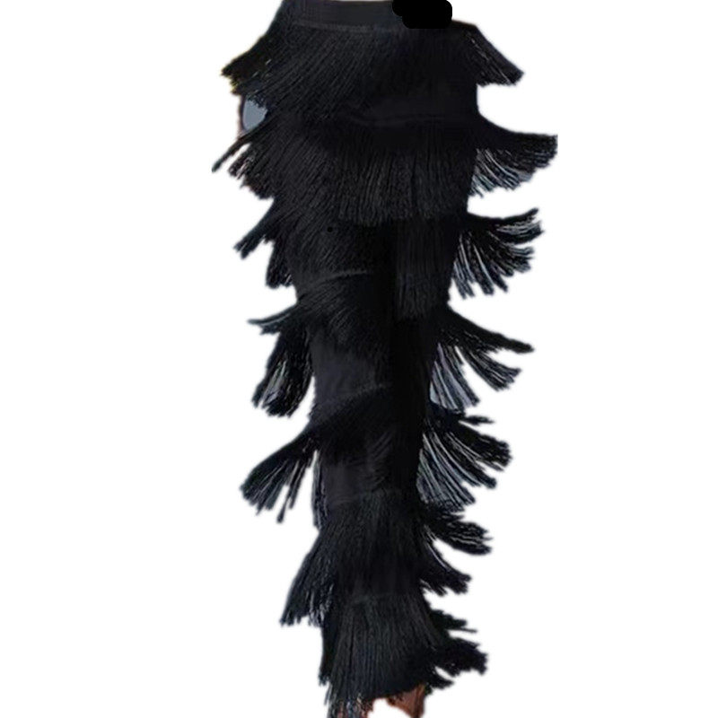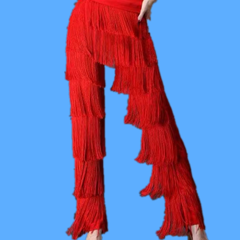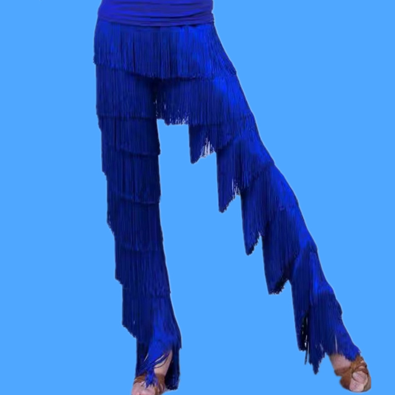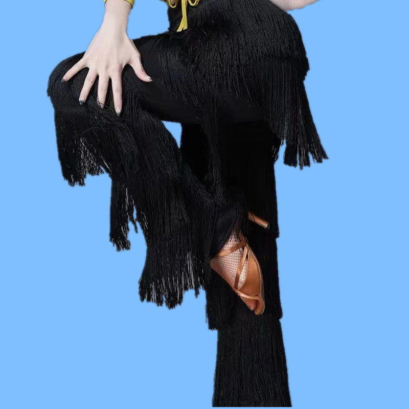 体舞服拉丁舞流苏裤子女成人摩登舞蹈长裤广场舞四季高腰跳舞裤子