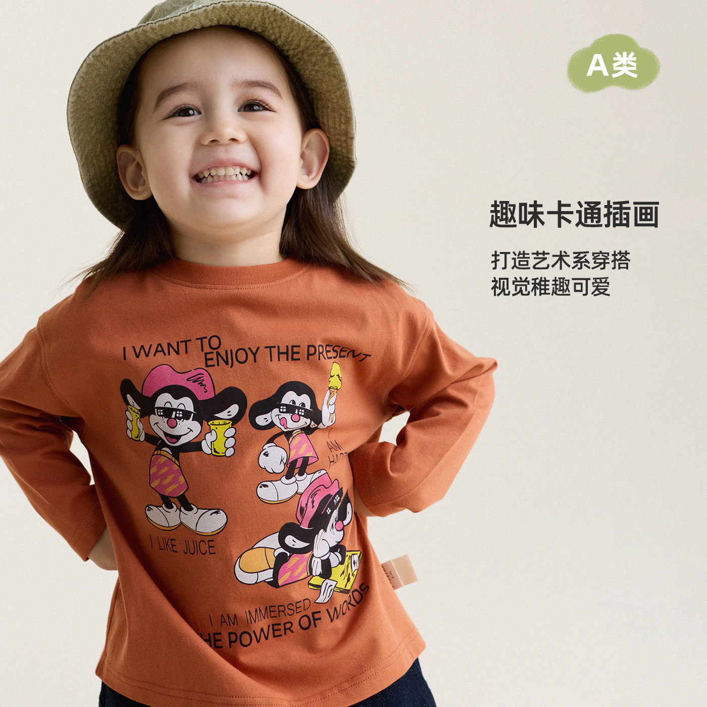 宝宝春季新款百搭卡通长袖允儿妈女童2026时尚纯棉T恤儿童上衣潮
