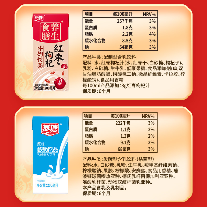 燕塘乳酸200ml*12红枣200ml*12混合新春装过年送礼口味
