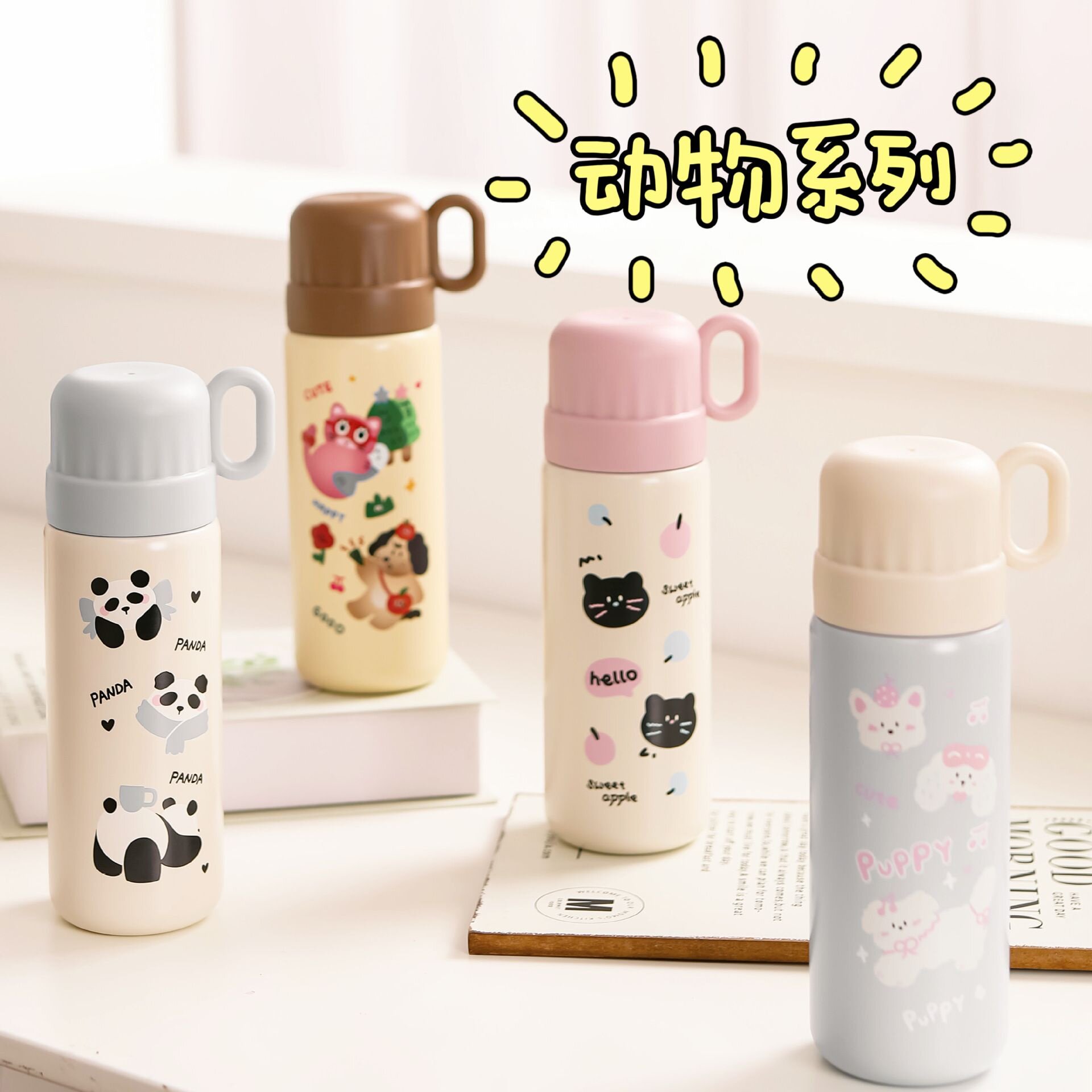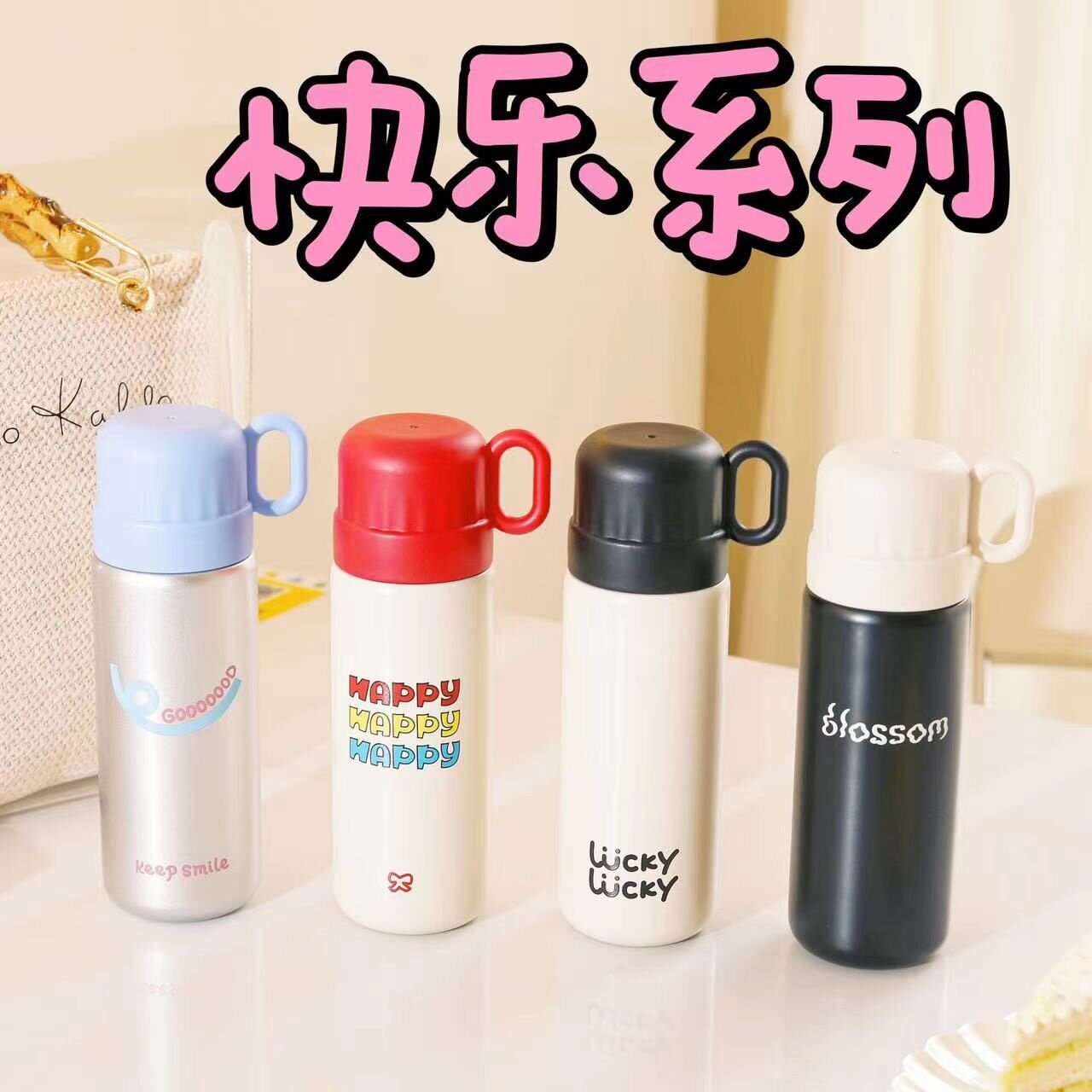 学生保温杯304不锈钢杯子女生高颜值便携小巧带吸管双饮水杯新款