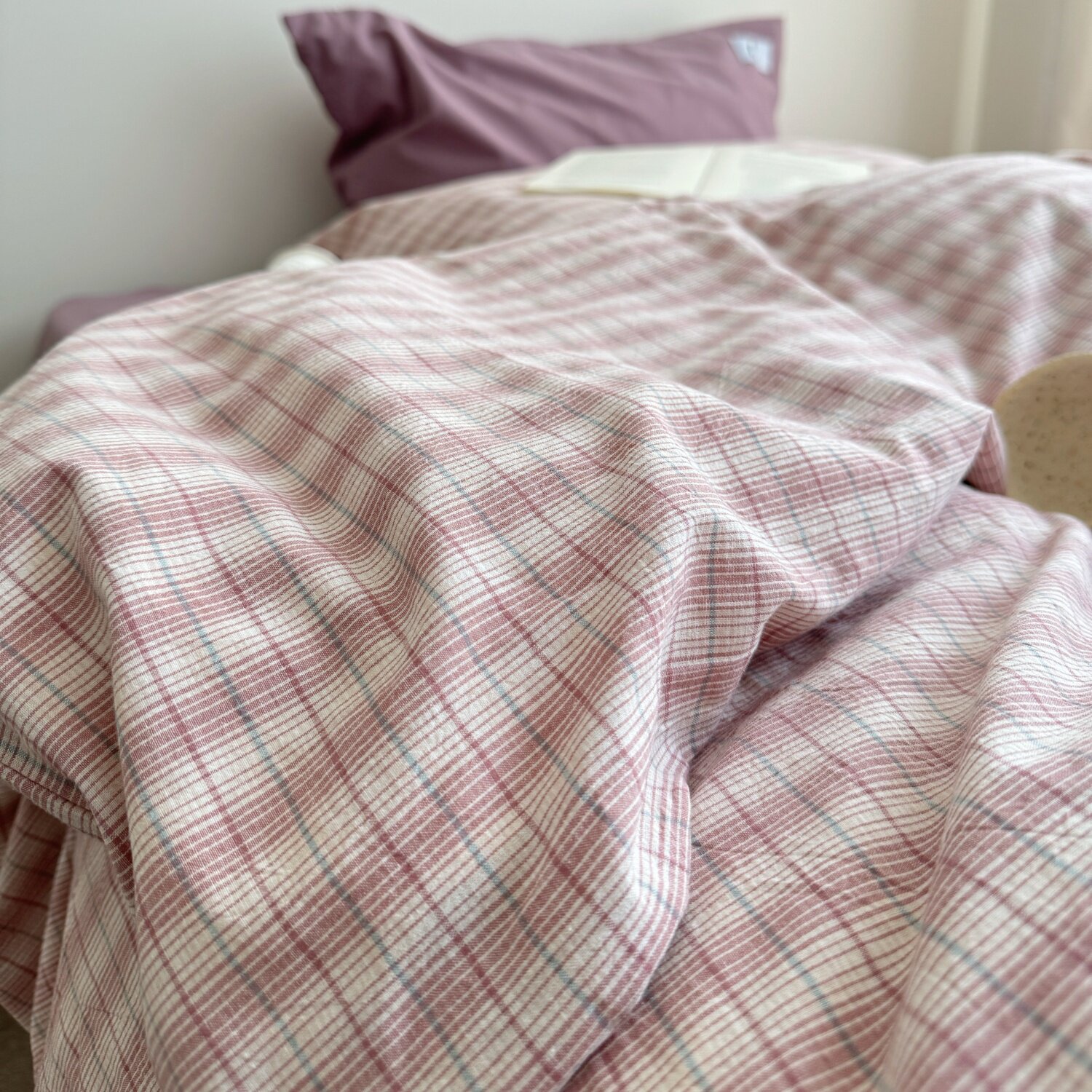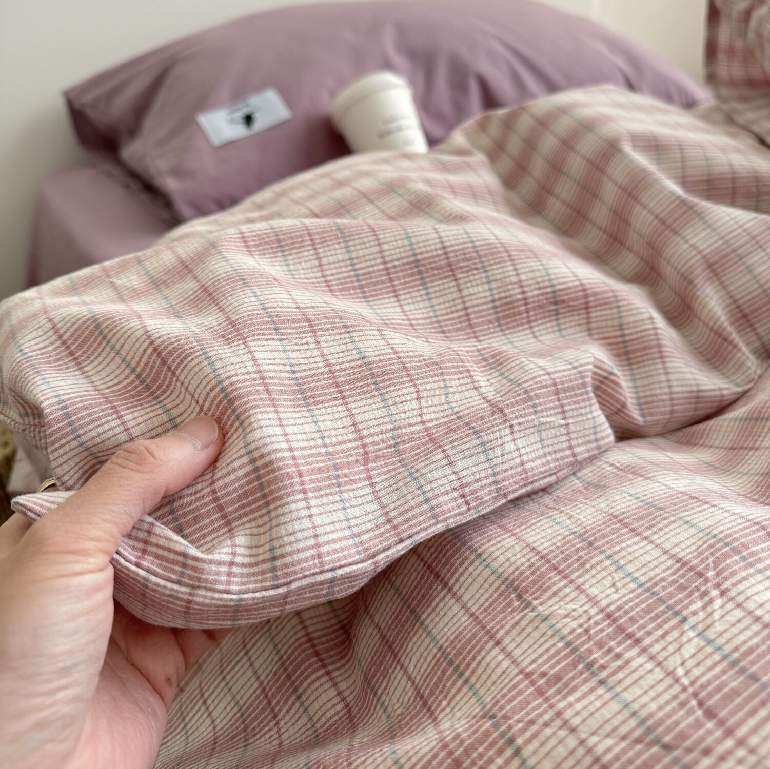 春夏简约条纹水洗棉床上四件套全棉纯棉复古被套床单床笠床品裸睡