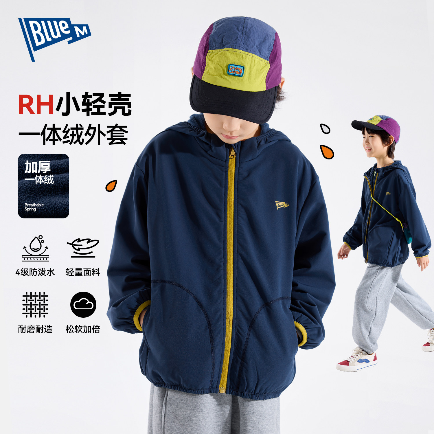 Bluem男童外套冲锋衣儿童衣服户外防风防水春秋新男孩运动青少年