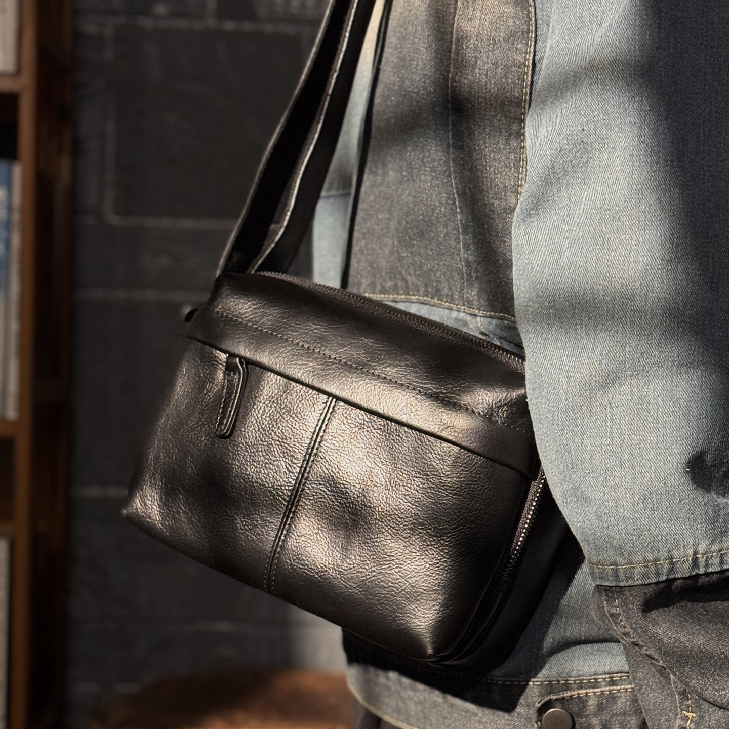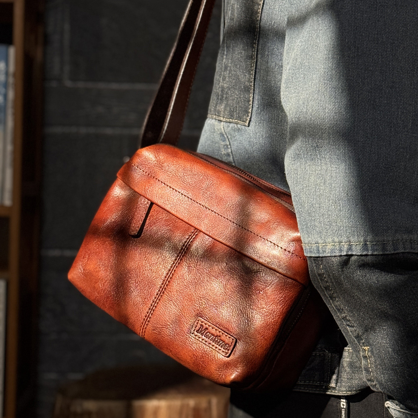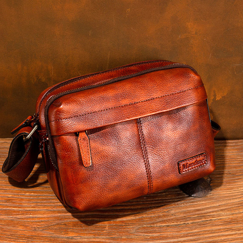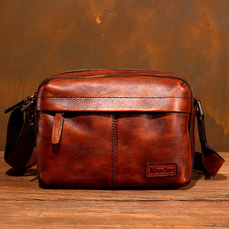 慢时光纯手工擦色男士头层牛皮单肩包女士真皮斜挎包植鞣牛皮挎包