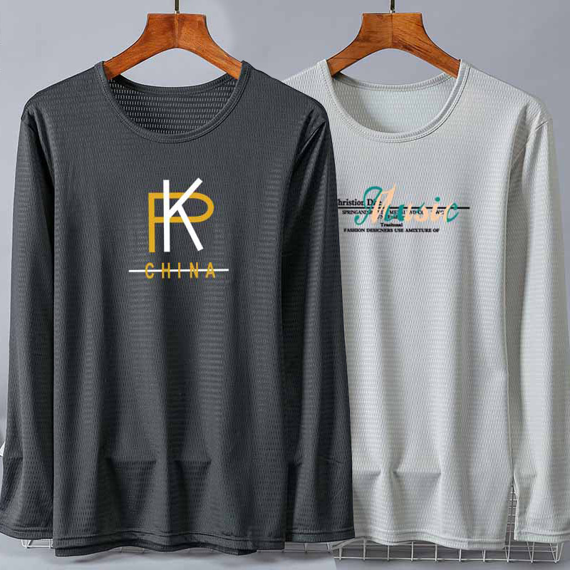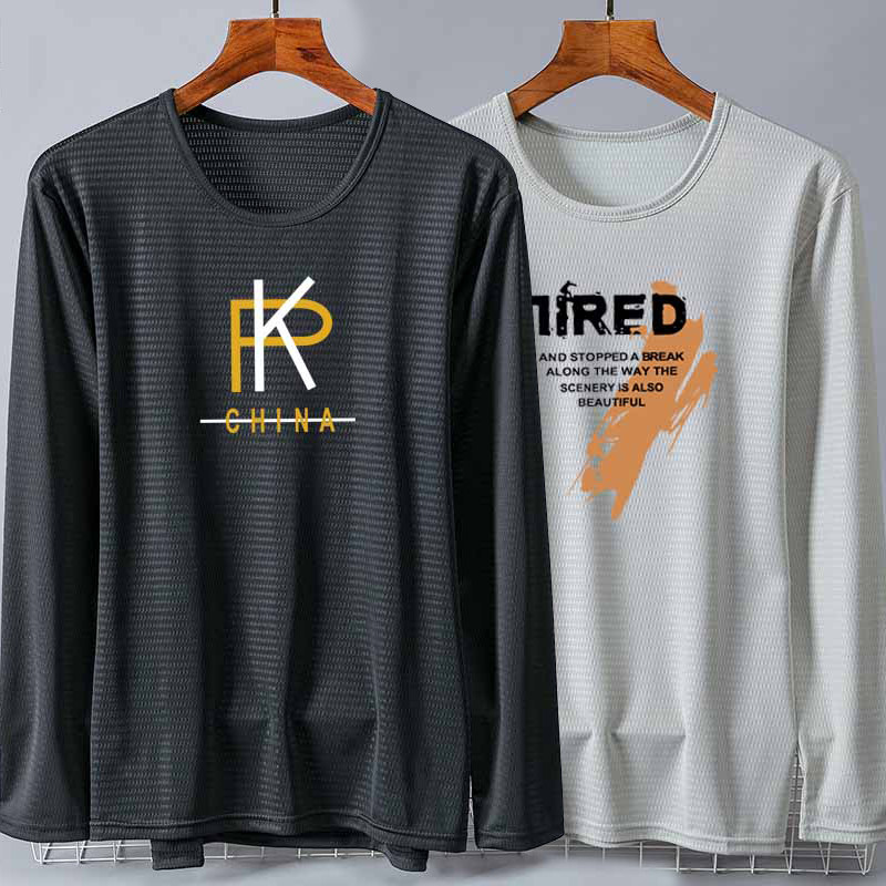 2件装-大码青少年休闲圆领打底薄款长袖t恤男士上衣夏季帅气男装