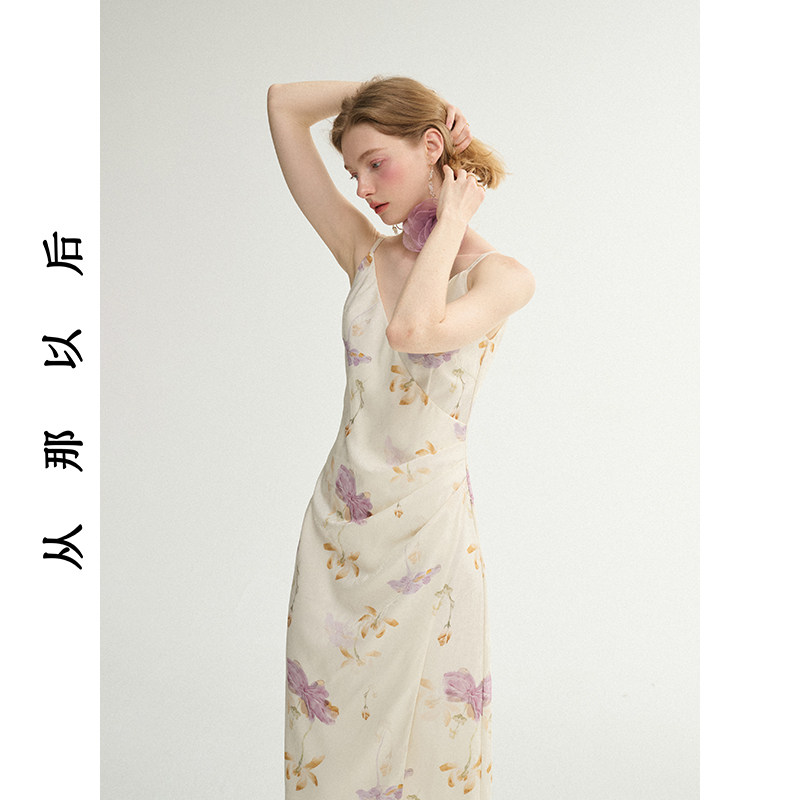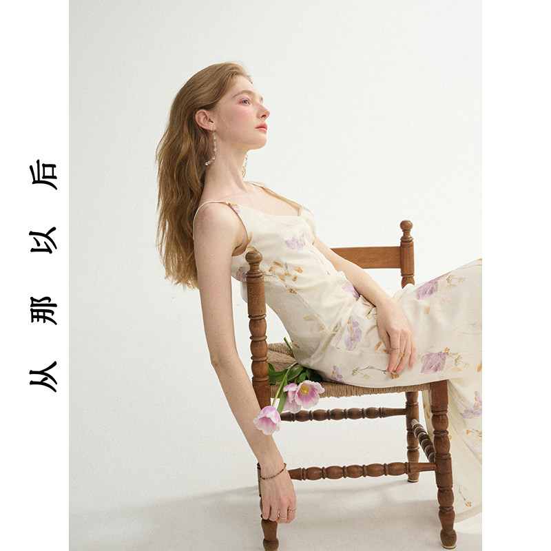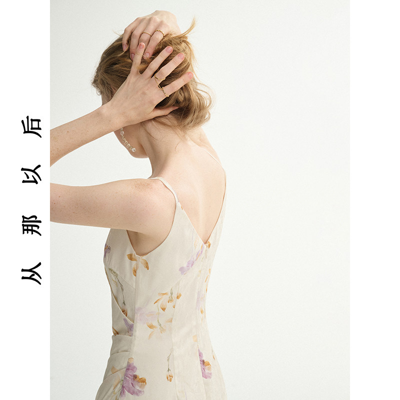 从那以后法式茶歇吊带裙v领长裙碎花连衣裙高级感穿搭小裙子女夏