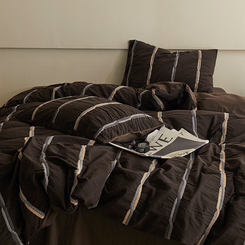北欧全棉水洗棉床上四件套2024新款男生高级感纯棉床单被套春秋款