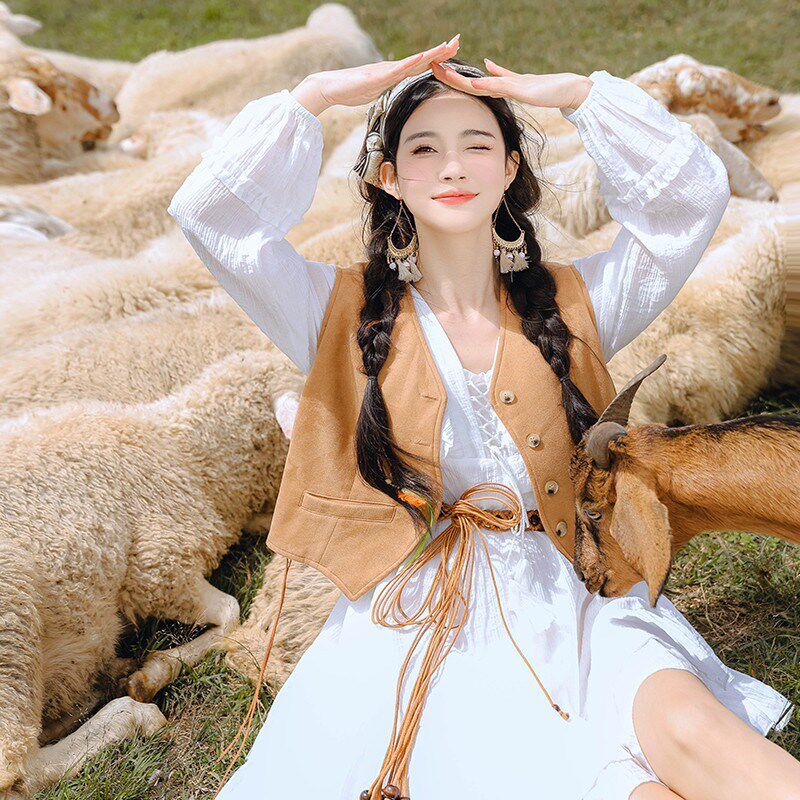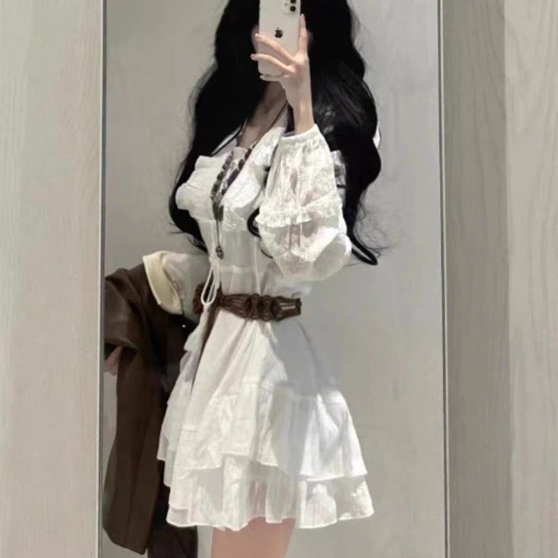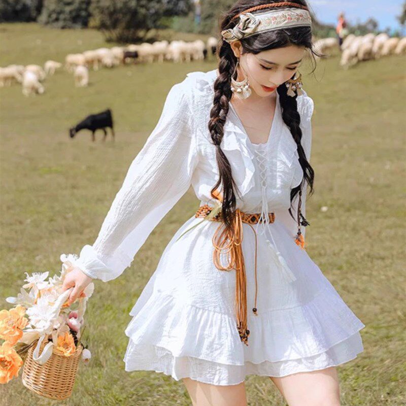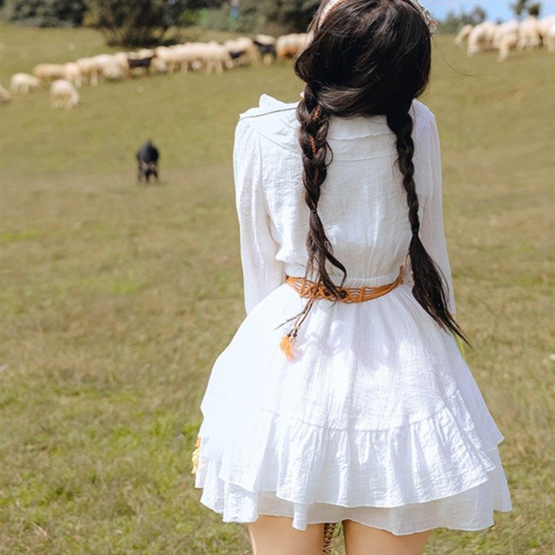 春夏秋小个子长袖连衣裙小白裙新疆云南海边旅游度假沙滩短裙女