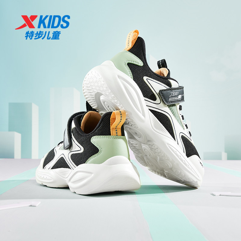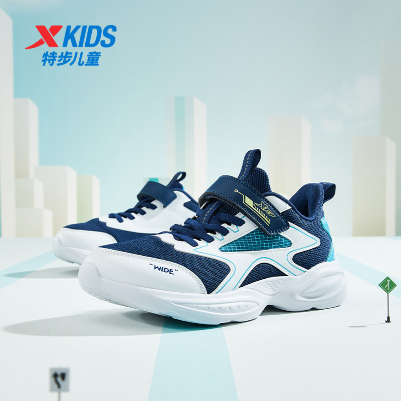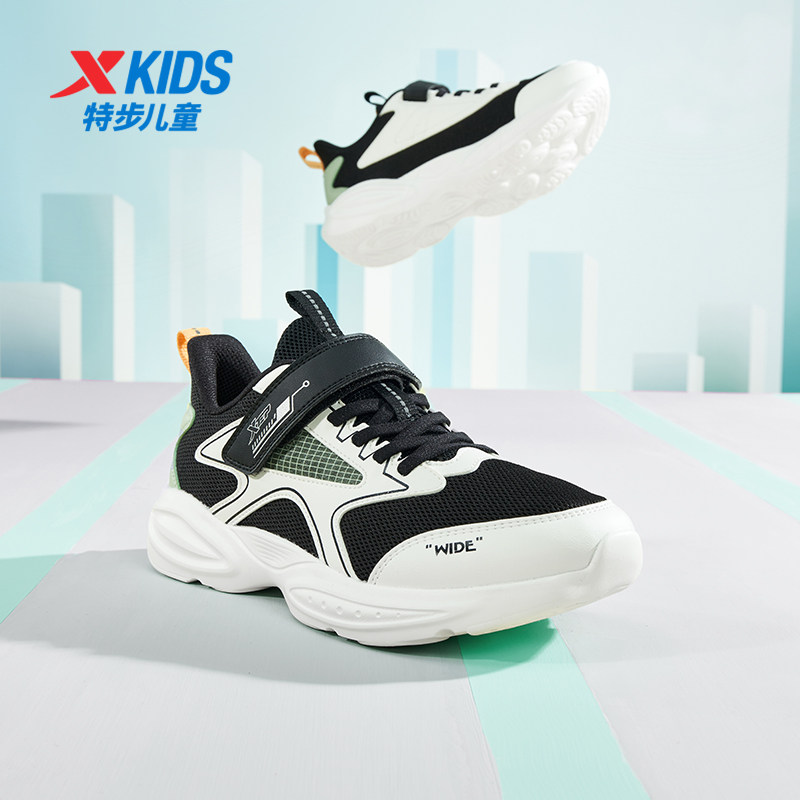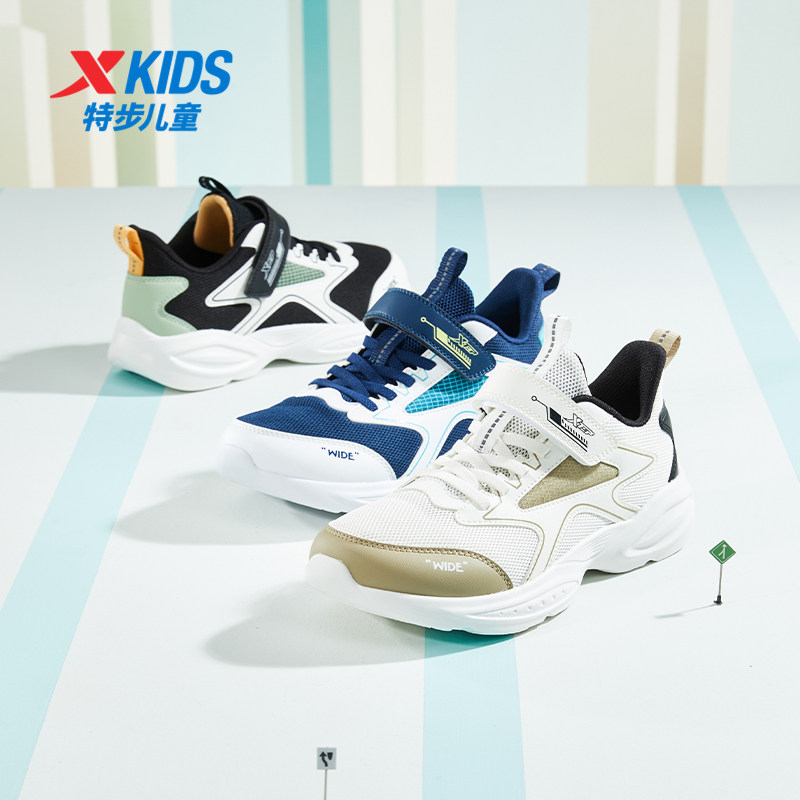 特步童鞋2026新款中大童宽楦软底儿童运动鞋男童耐磨跑步鞋魔术贴