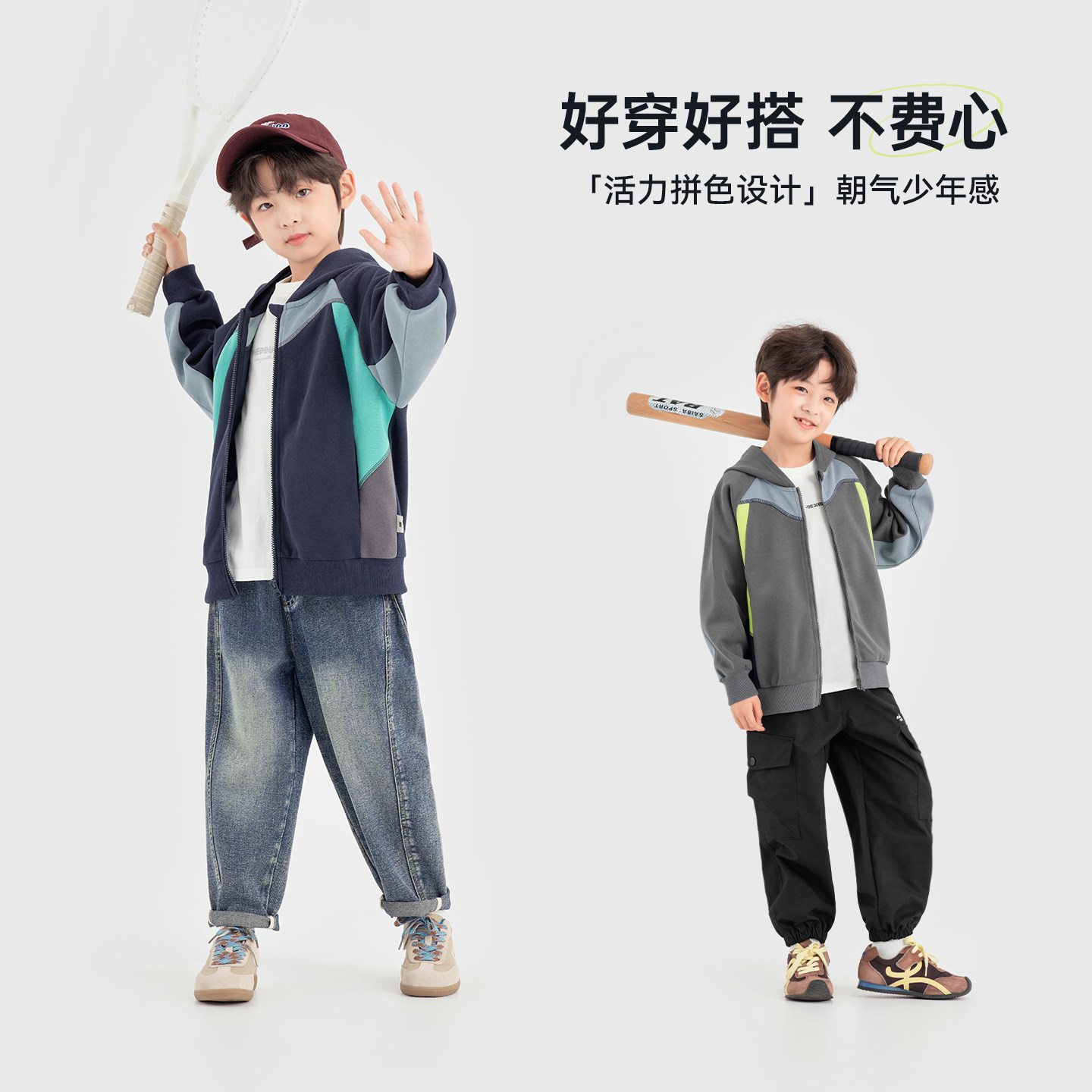 多多家男童外套卫衣2026春装新款春秋儿童撞色男孩休闲洋气上衣潮