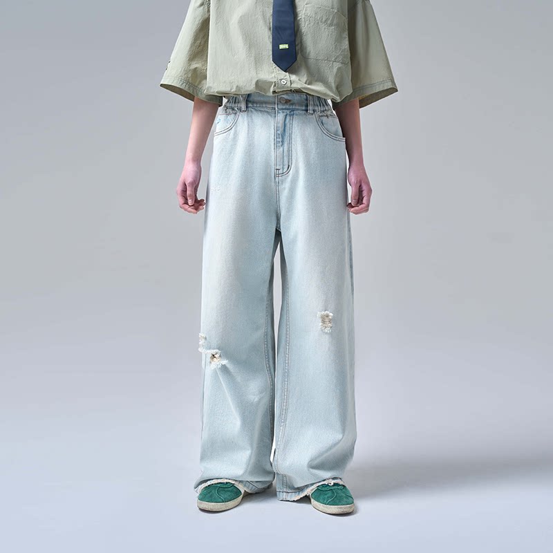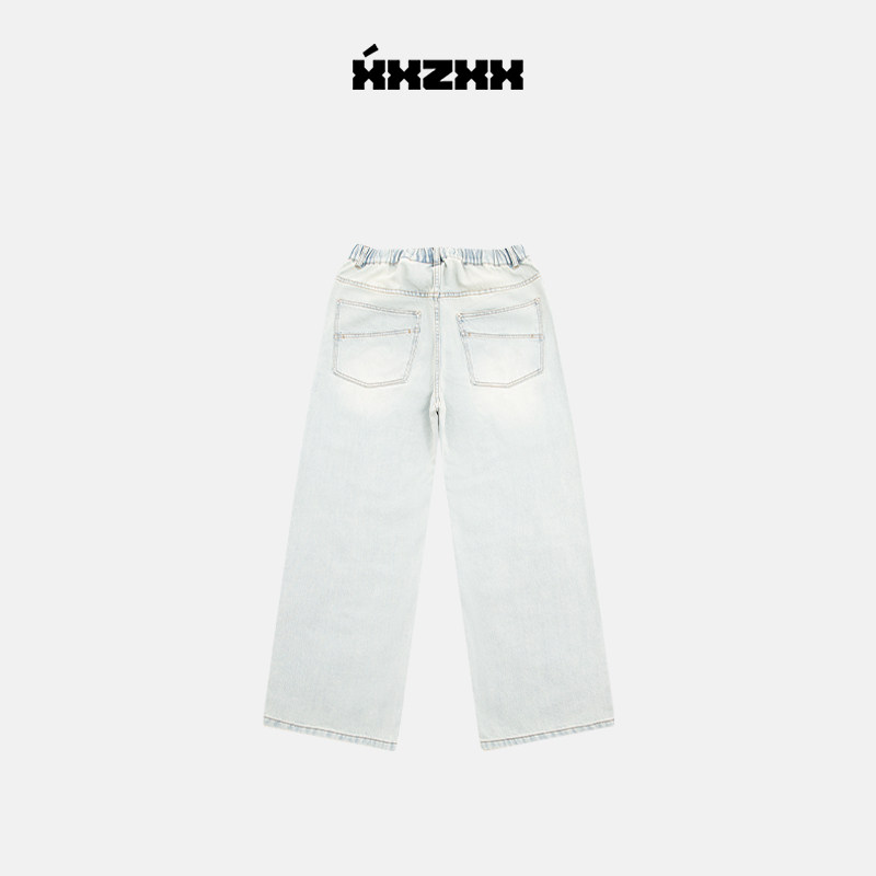 XXZXX薄款破洞牛仔裤男女款直筒裤子潮牌童装亲子装 夏季新款1151