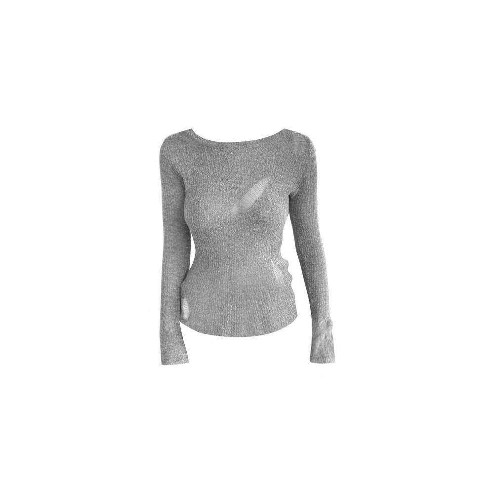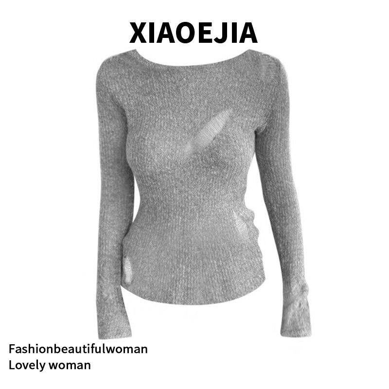 灰色镂空破洞毛衣女款2026新款冬季设计感小众修身显瘦针织衫上衣