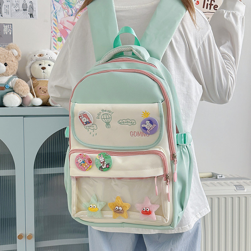 书包女生小学生绿色痛包2025新款大容量初中生背包女学院风补课包