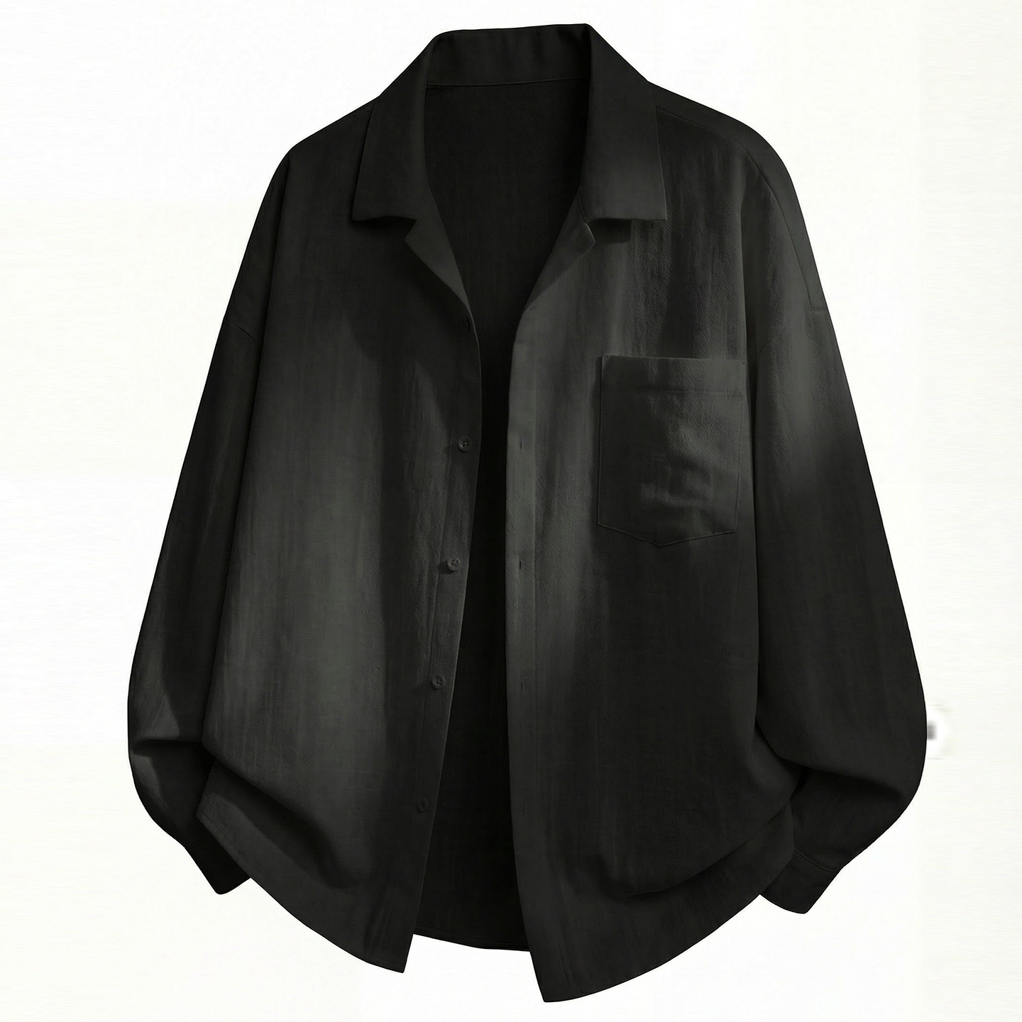 男士黑色古巴领亚麻长袖衬衫男款高级感春季衬衣外套上衣2026新款