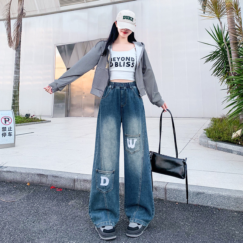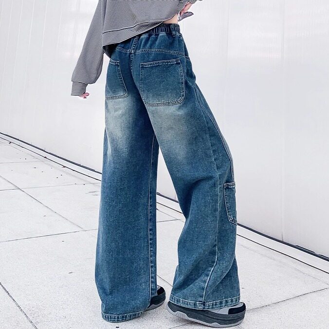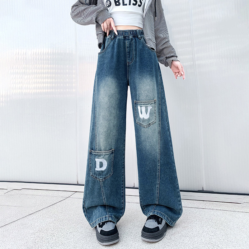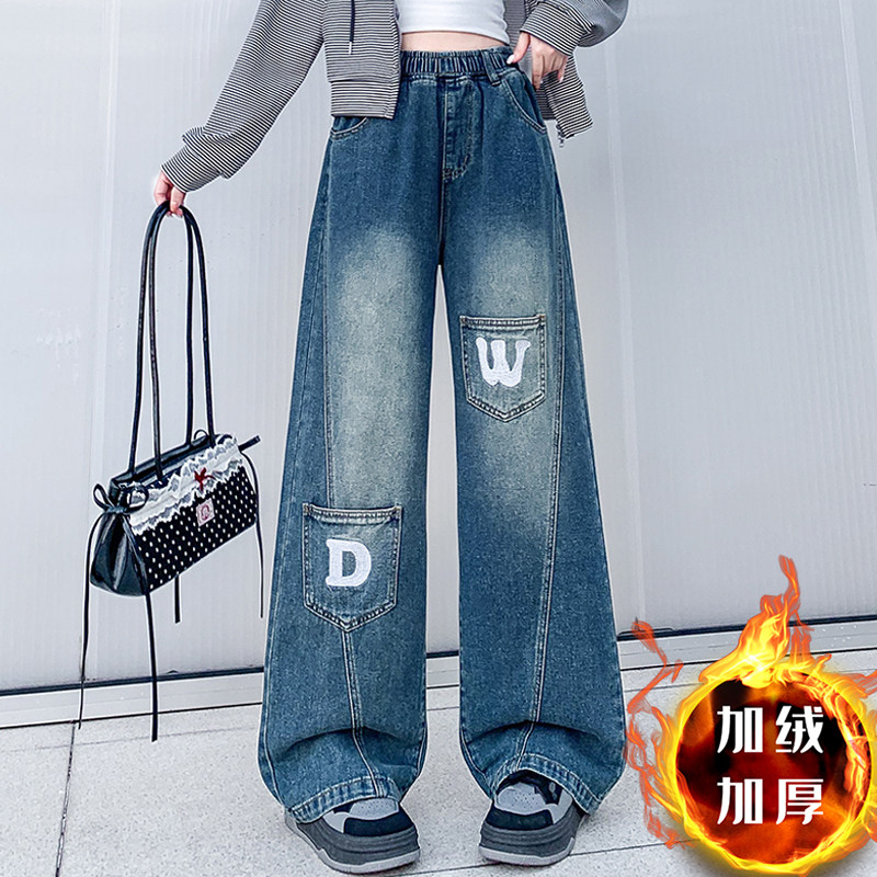 2025超火初中生青少年高中学生女生超好看加绒牛仔裤女式阔腿裤子