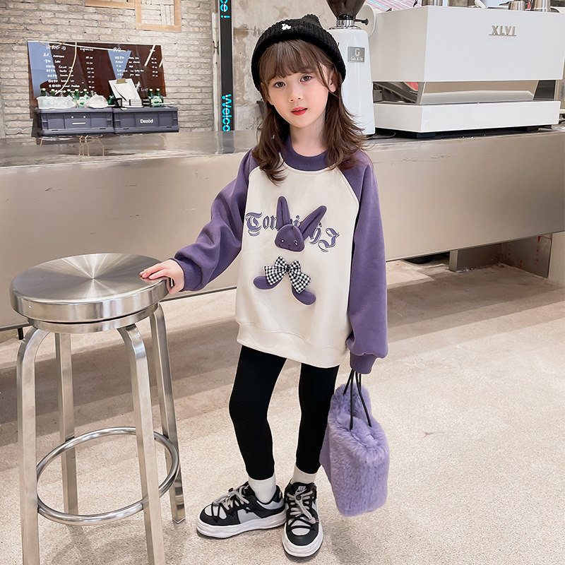 女童卫衣秋冬2026新款儿童加绒加厚上衣小学生女孩春秋纯棉打底衫