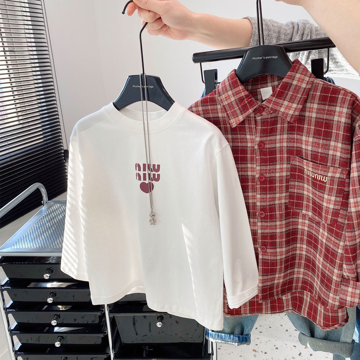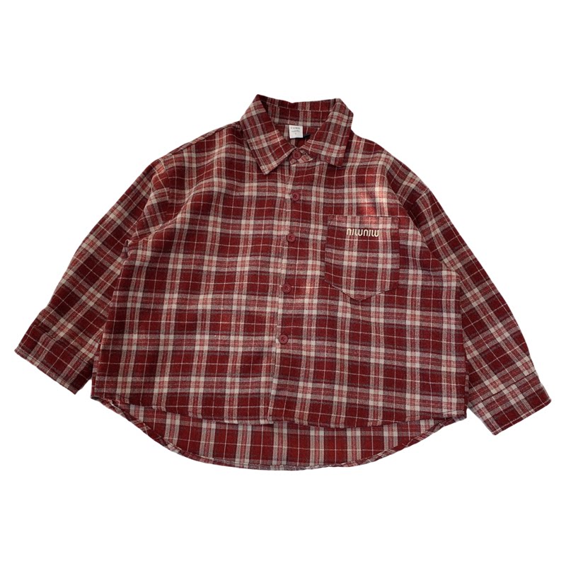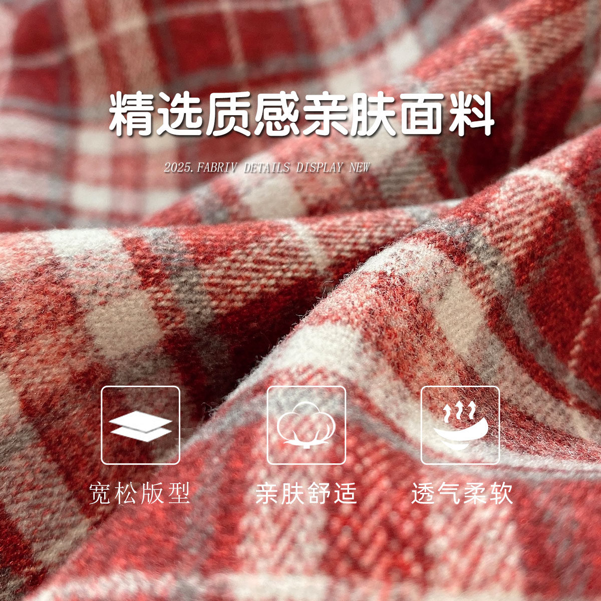 2026年春装男童磨毛红色格子长袖衬衫中大童韩版纯棉衬衣宝宝上衣