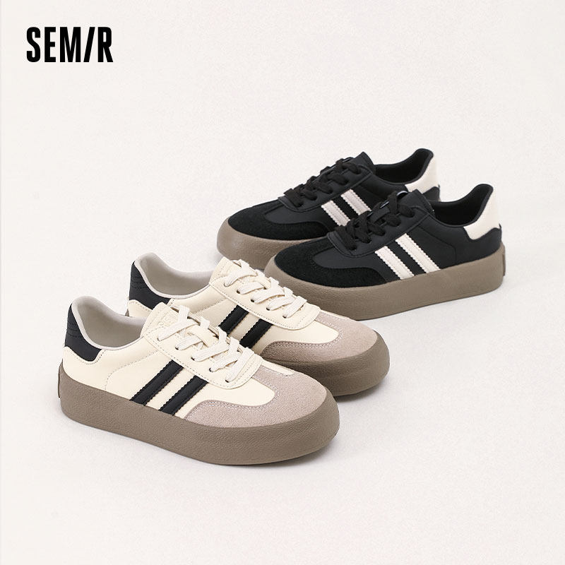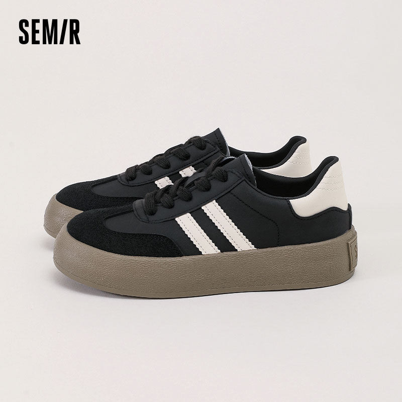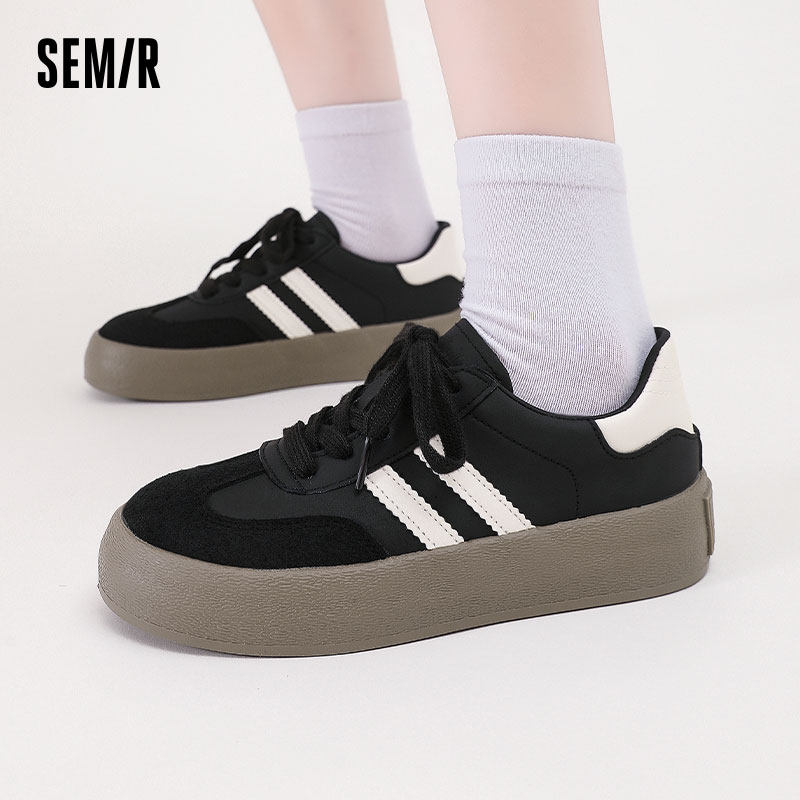 Semir女鞋德训鞋2026春夏新款黑色厚底女款百搭款运动透气板鞋女