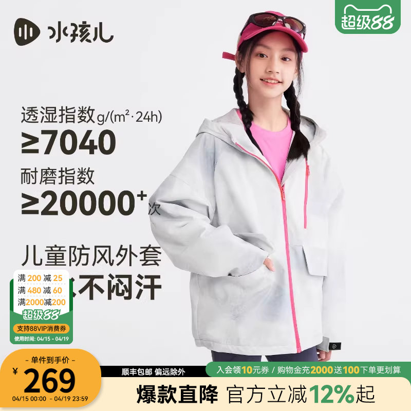 水孩儿童装外套女孩2026春装新款青少年三防加绒厚风衣初中生上衣