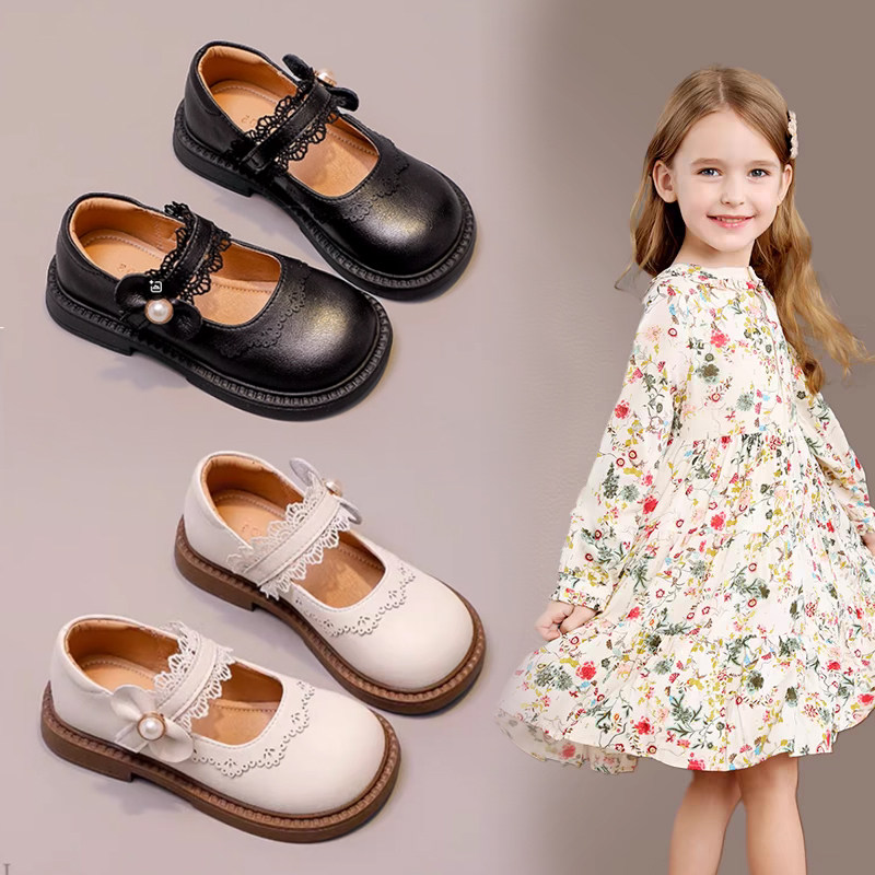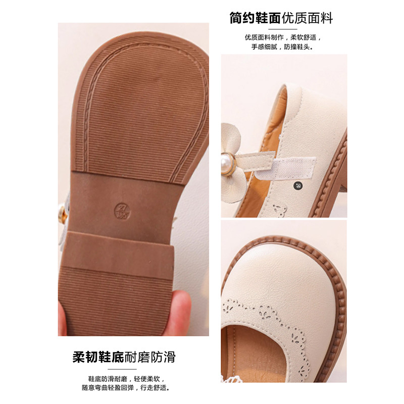 女童鞋子儿童真软皮公主小皮鞋2026春秋季新款女宝宝简约米色单鞋