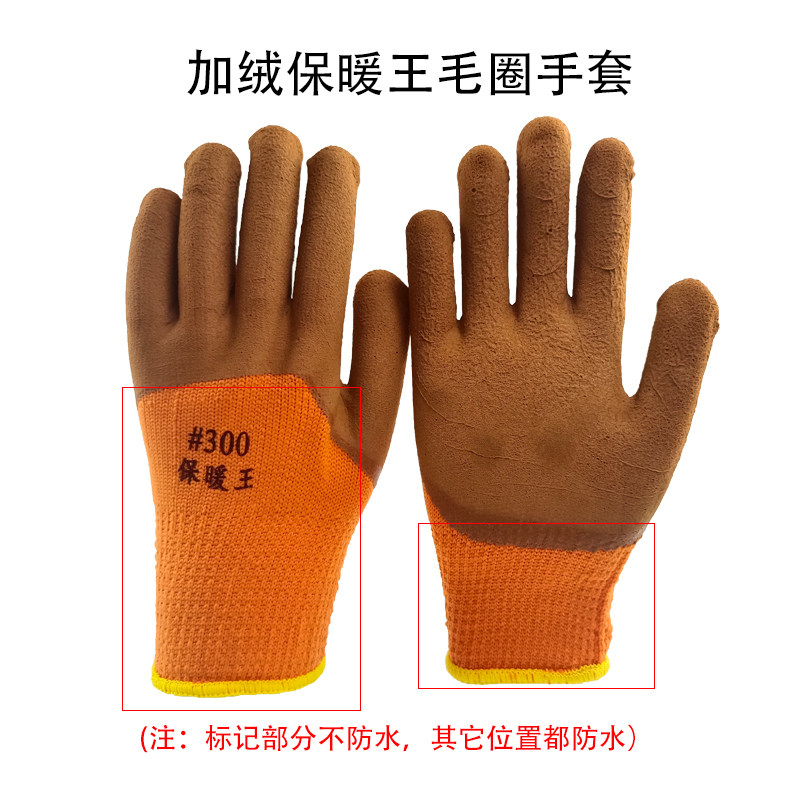 胶皮冬季工地干活保暖防滑防水手套工作劳保耐磨耐用加厚加绒防冻
