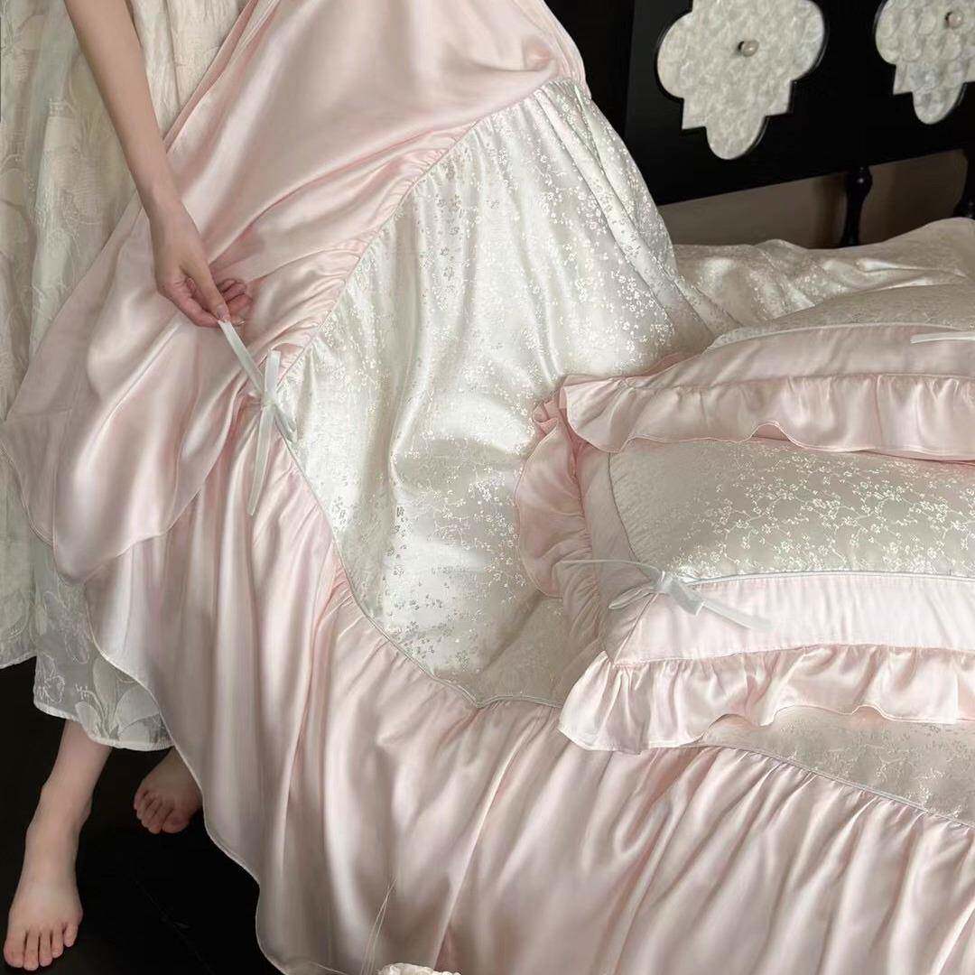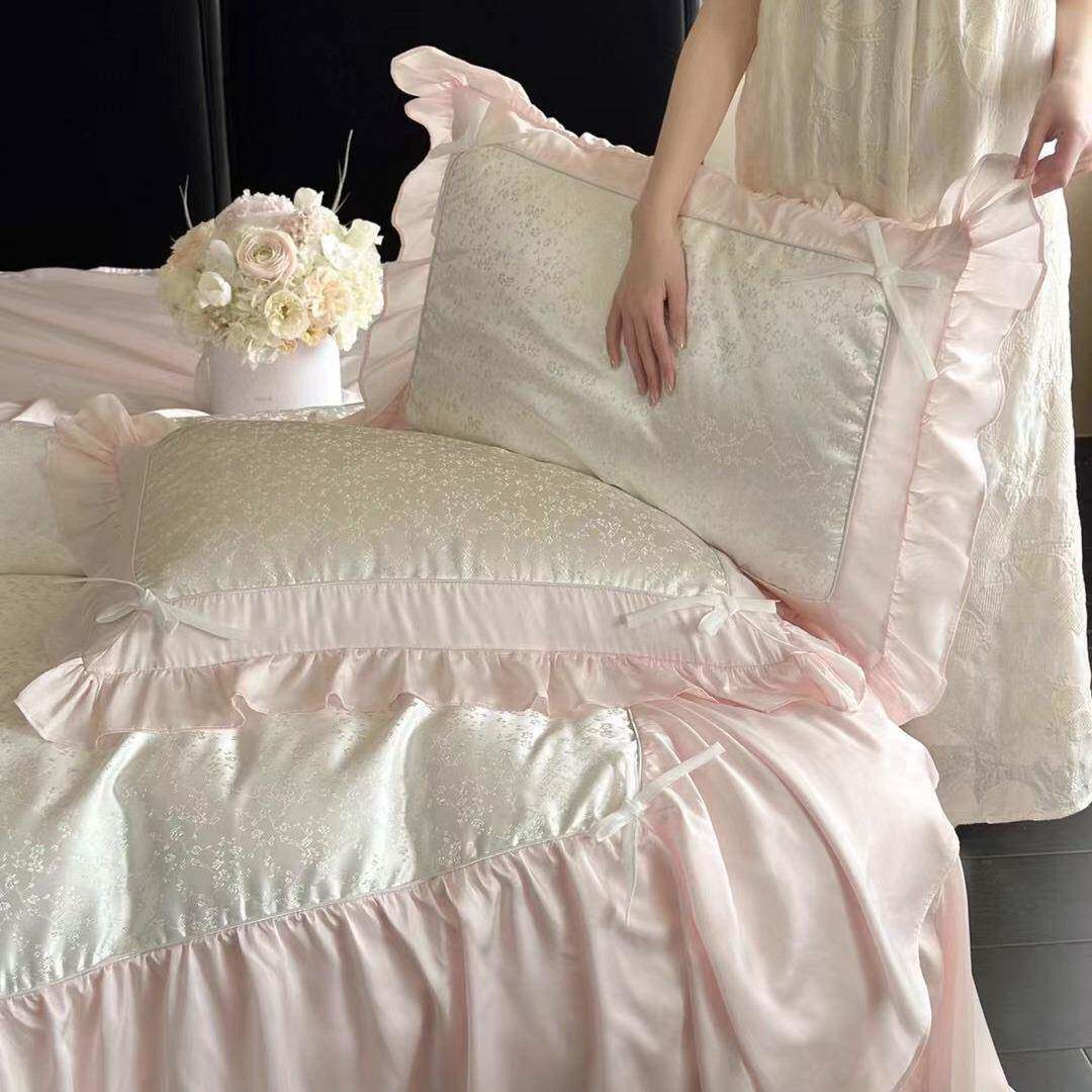 60支兰精天丝刺绣四件套法式高档少女公主粉色床上凉感4件套冰丝