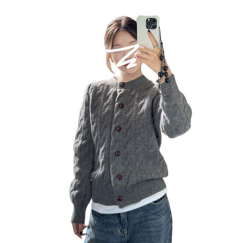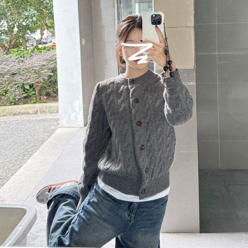 灰色麻花毛衣外套女秋冬季2025新款慵懒风高级感加厚针织开衫上