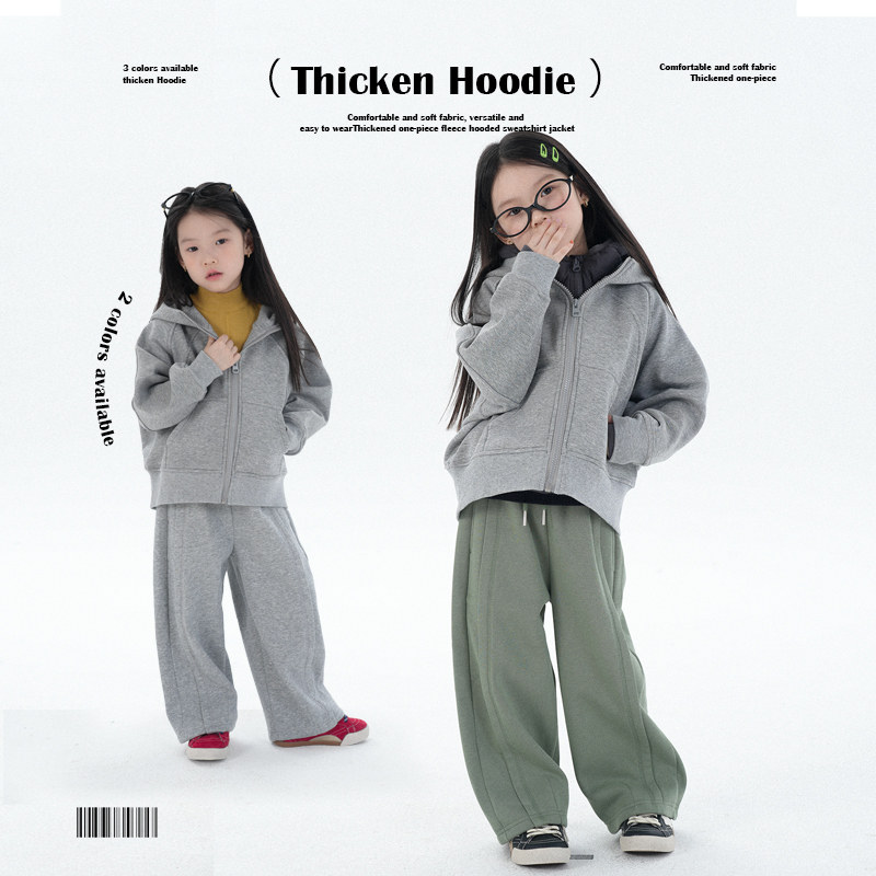 PISELLI史豌豆女童加厚一体绒保暖卫衣儿童冬季新款休闲连帽外套