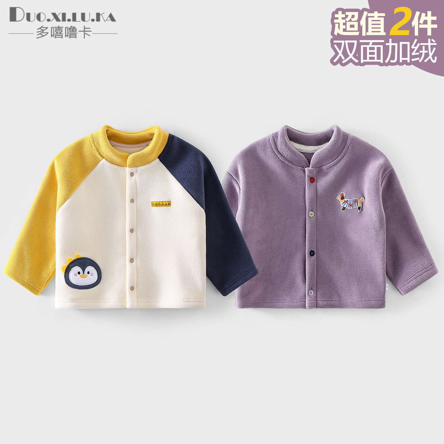 2件 奥利绒宝宝加厚保暖外套中小童棉衣男女童上衣婴幼儿开衫卫衣