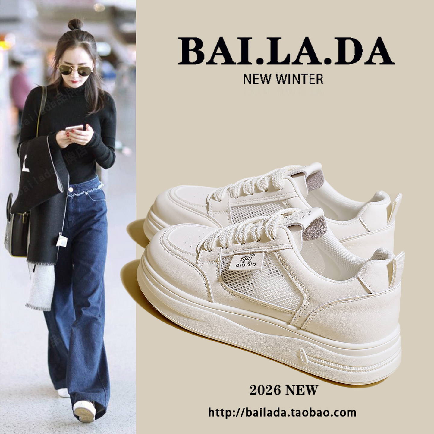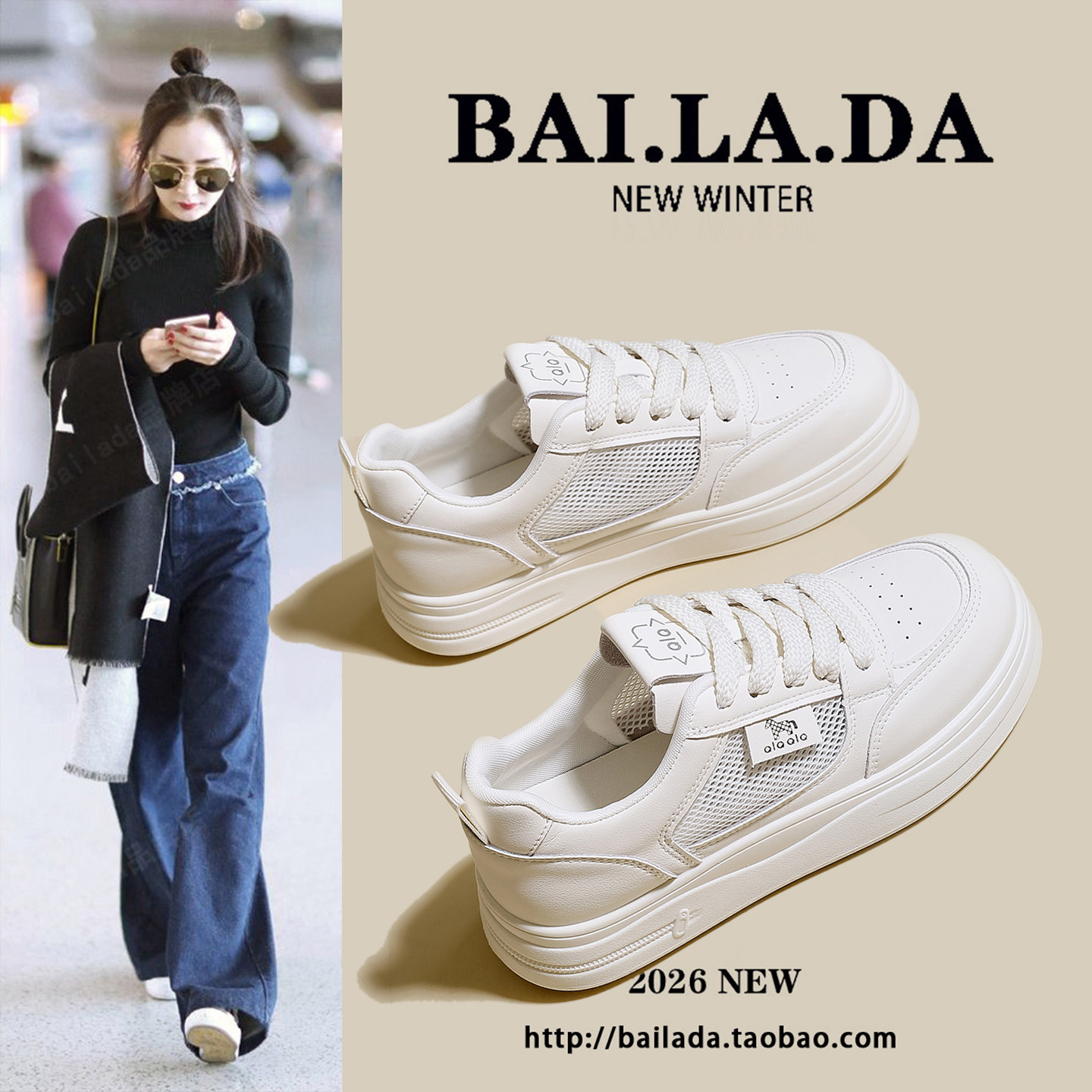 爆款厚底透气小白鞋女款2026春季夏季新款百搭休闲网面板鞋女鞋子