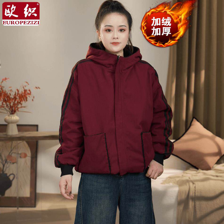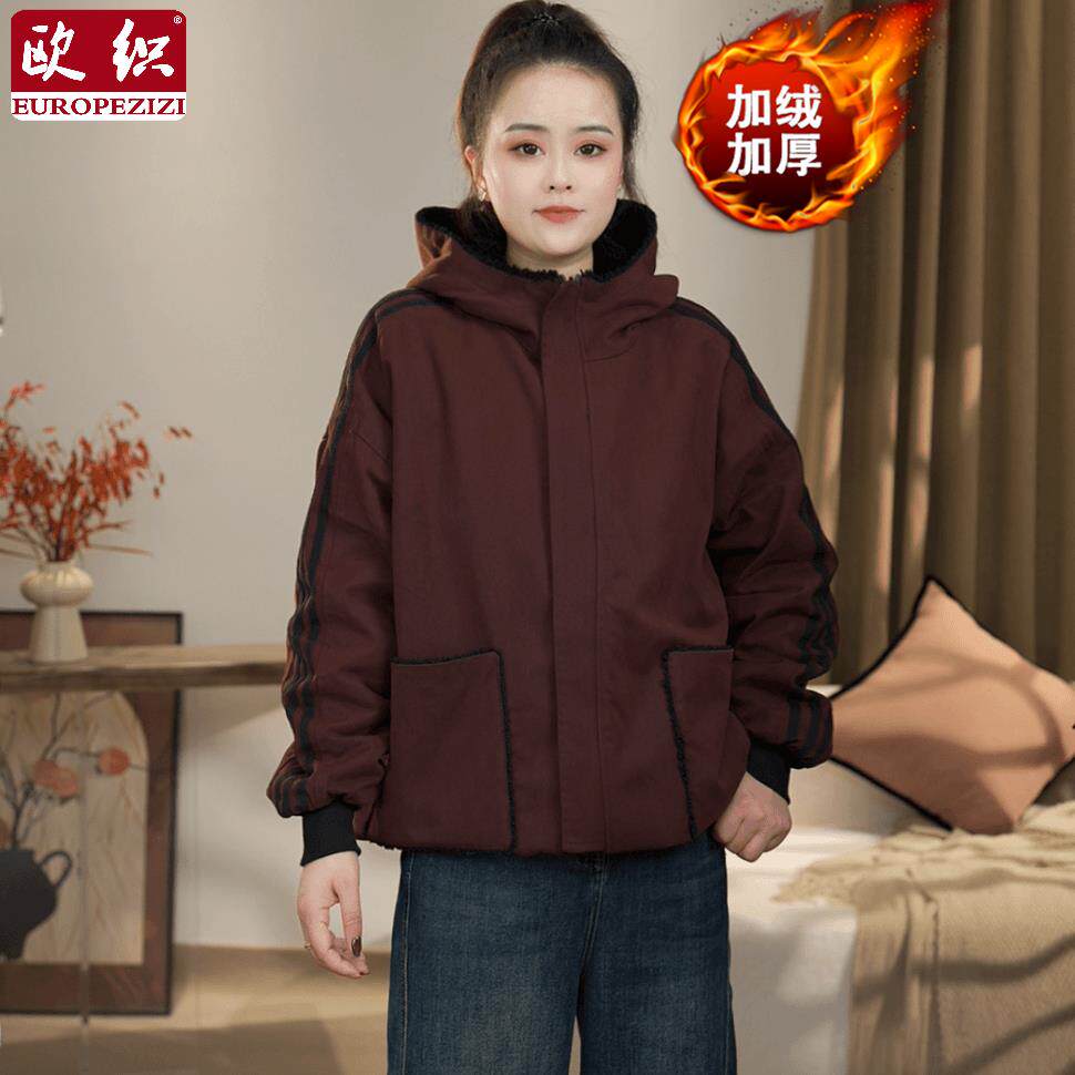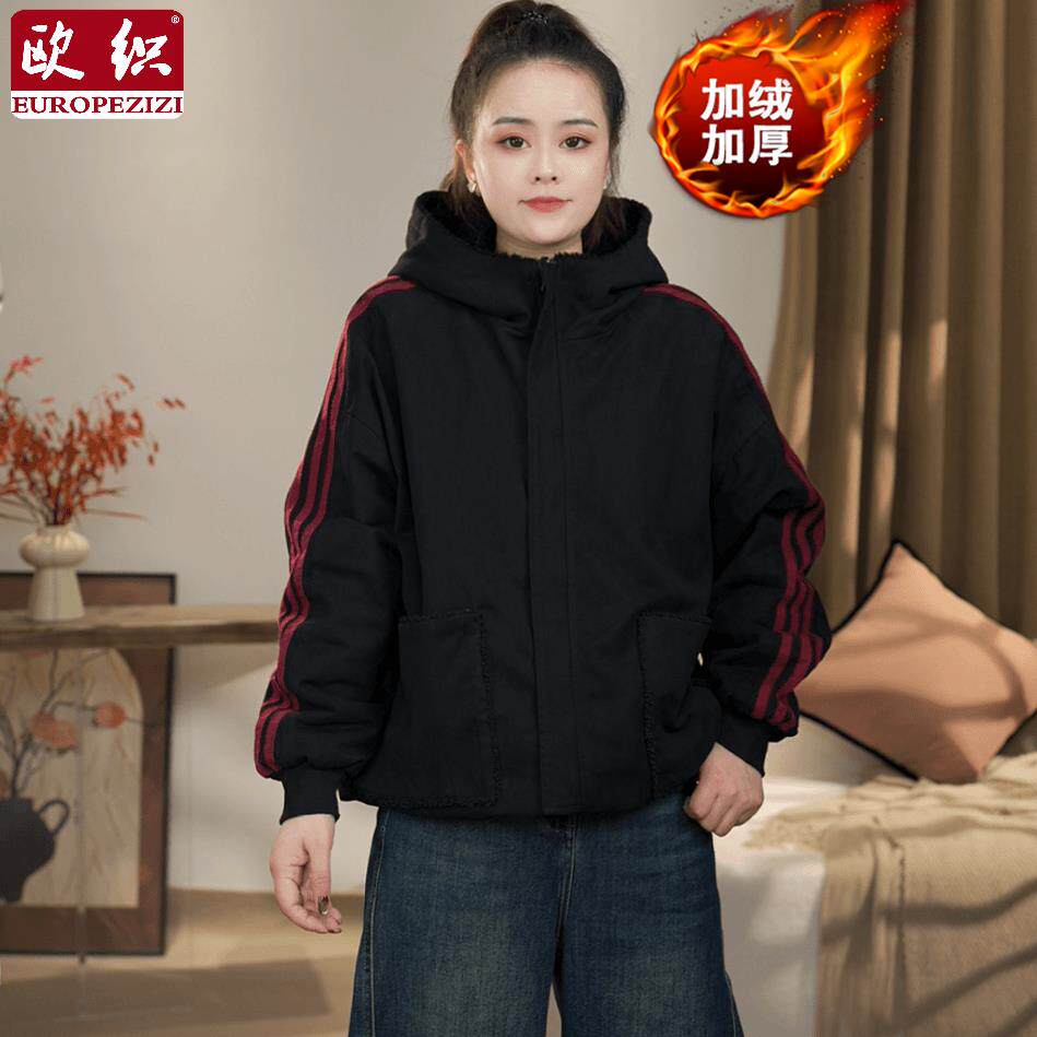 冬季时尚休闲宽松两面穿加绒加厚棉服2025新款洋气减龄连帽外套女