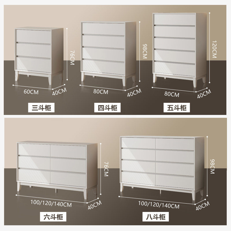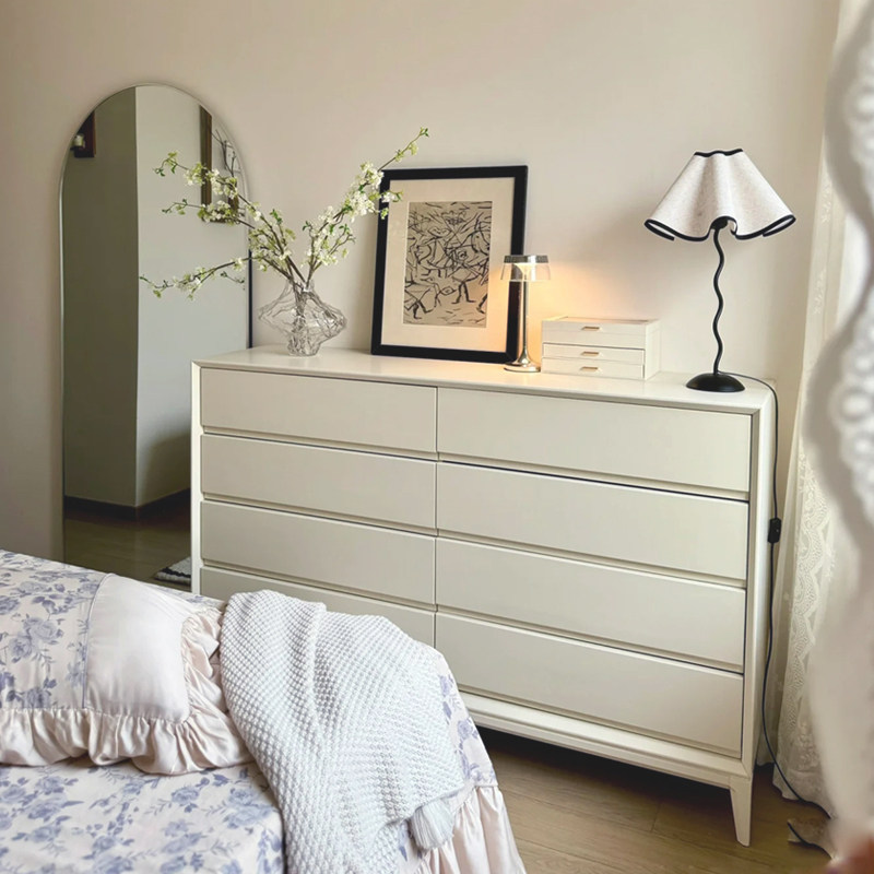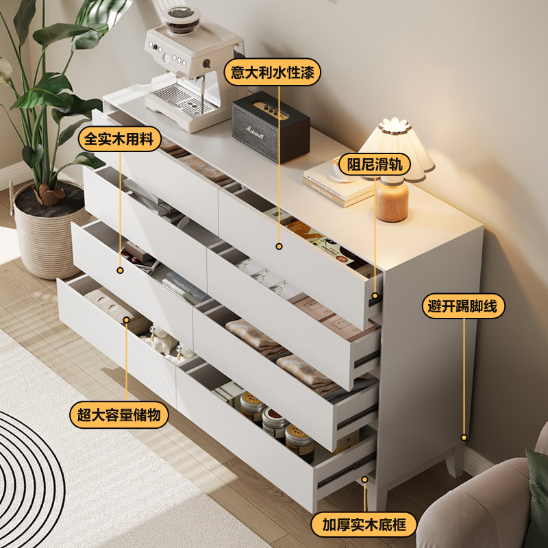 奶油风实木八斗柜简约现代客厅靠墙储物柜卧室床尾抽屉柜收纳柜子
