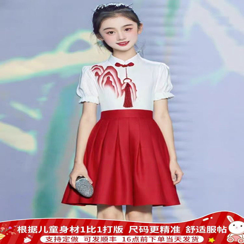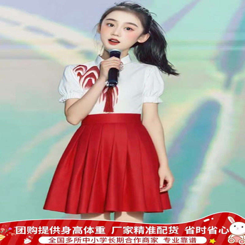 国庆儿童朗诵合唱演出服小学生演讲比赛中国风红色歌爱国诗歌万疆