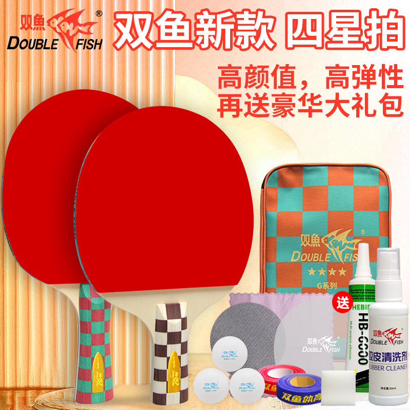 乒乓球拍双鱼四星小鱼格格儿童小学生专用兵兵球拍长柄单拍初学者