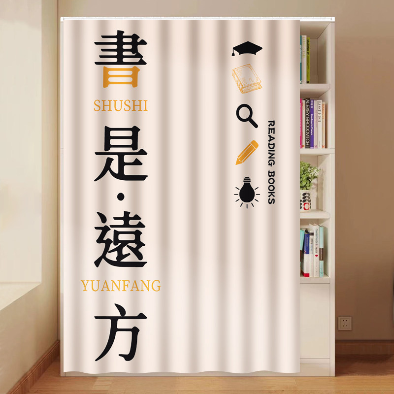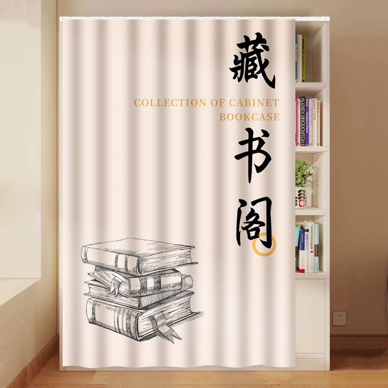开放式书柜遮挡帘图书馆无门书架防尘遮尘帘柜子布帘免打孔轨道式