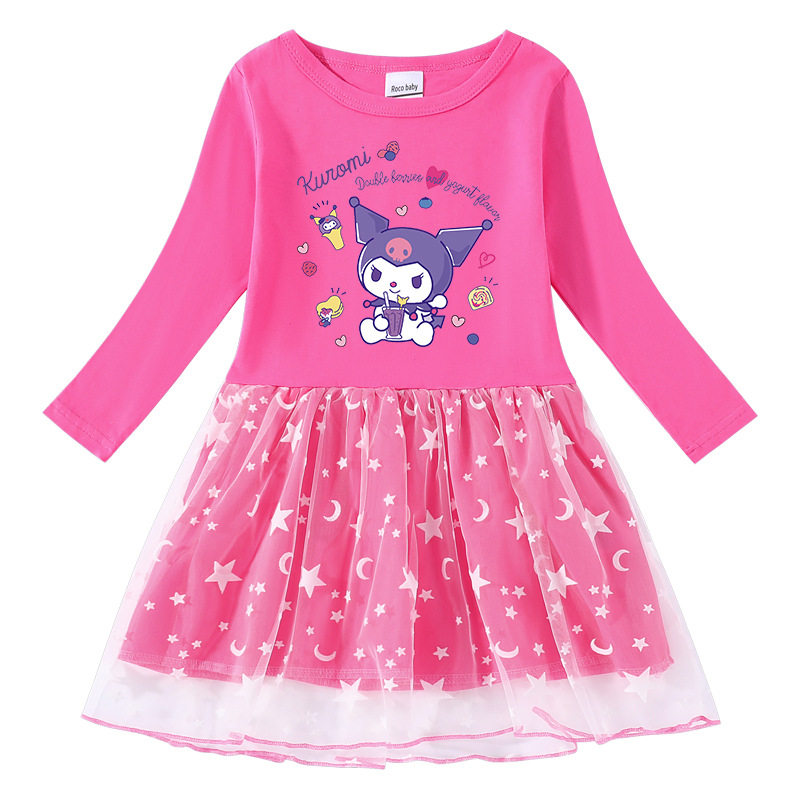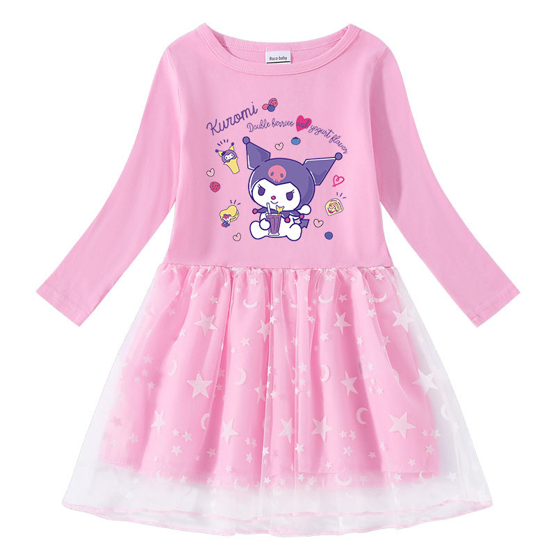 库洛米衣服女童连衣裙春秋新款女孩纯棉网纱长袖裙子宝宝薄款春装