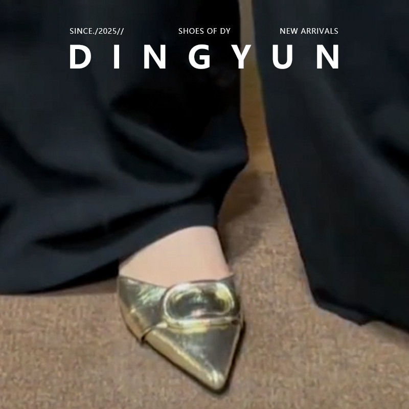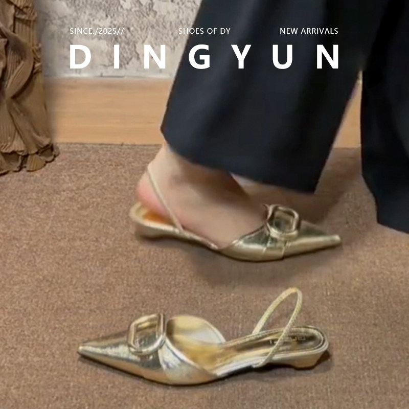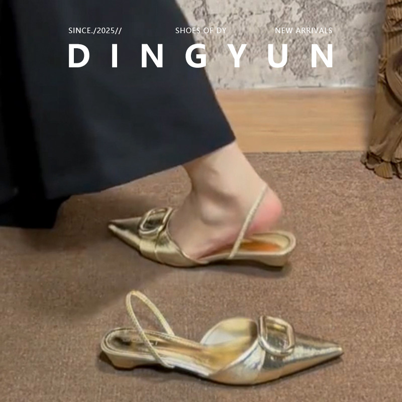 【丁允】法式尖头方扣粗跟凉鞋女夏季外穿百搭不累脚粗跟浅口单鞋