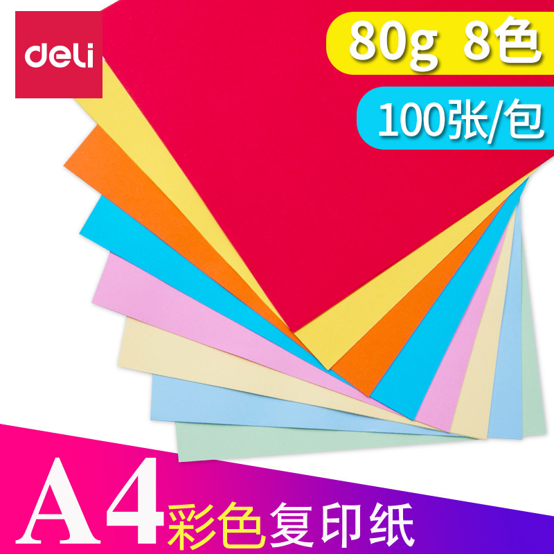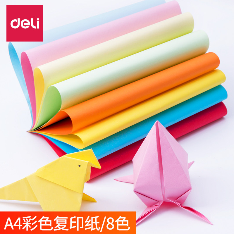 得力A4彩色复印纸混色a4打印纸儿童学生手工折纸办公用70g*100张
