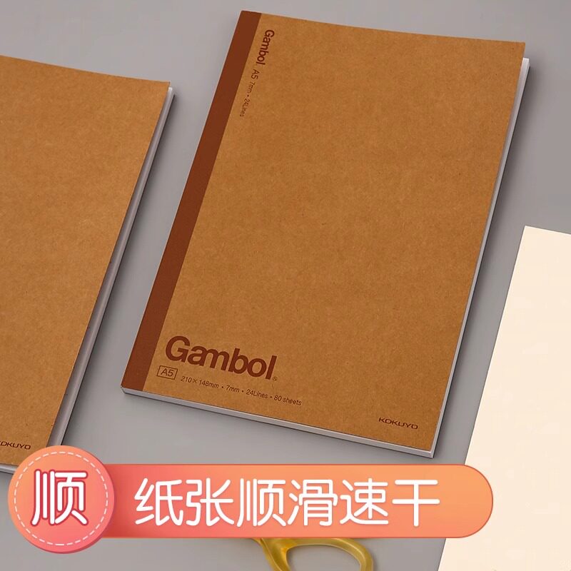 日本kokuyo国誉Gambol无线装订本笔记本学生用记事本不易掉页可平摊B5横线本牛皮纸复古胶装本记笔记b5a5本子