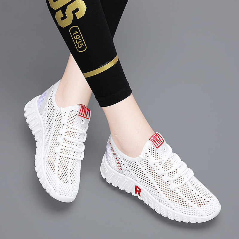 气质网面透气款小白鞋春夏薄款2025年网眼女鞋子白色休闲运动网鞋