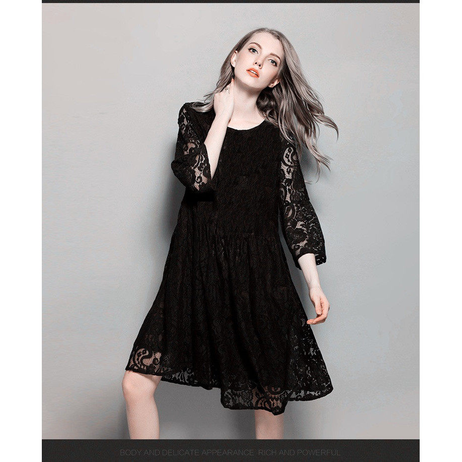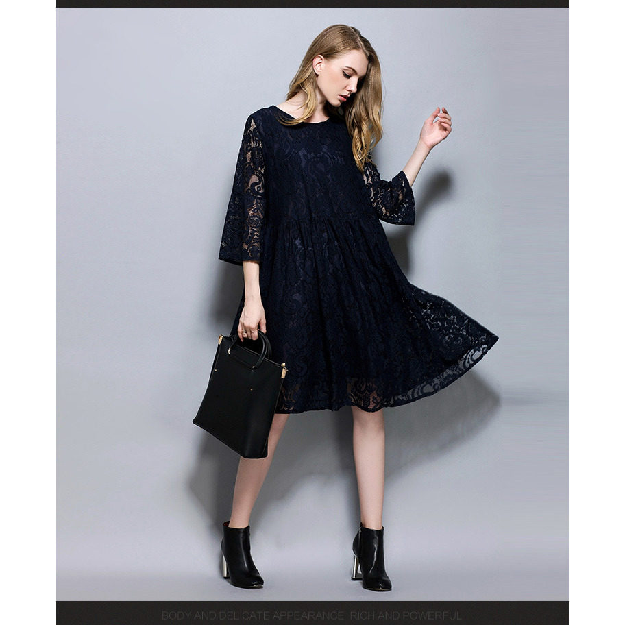 欧洲站春秋夏季款蕾丝连衣裙子女大码胖mm长袖韩版大码宽松打底裙