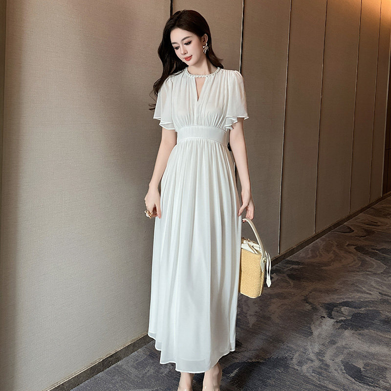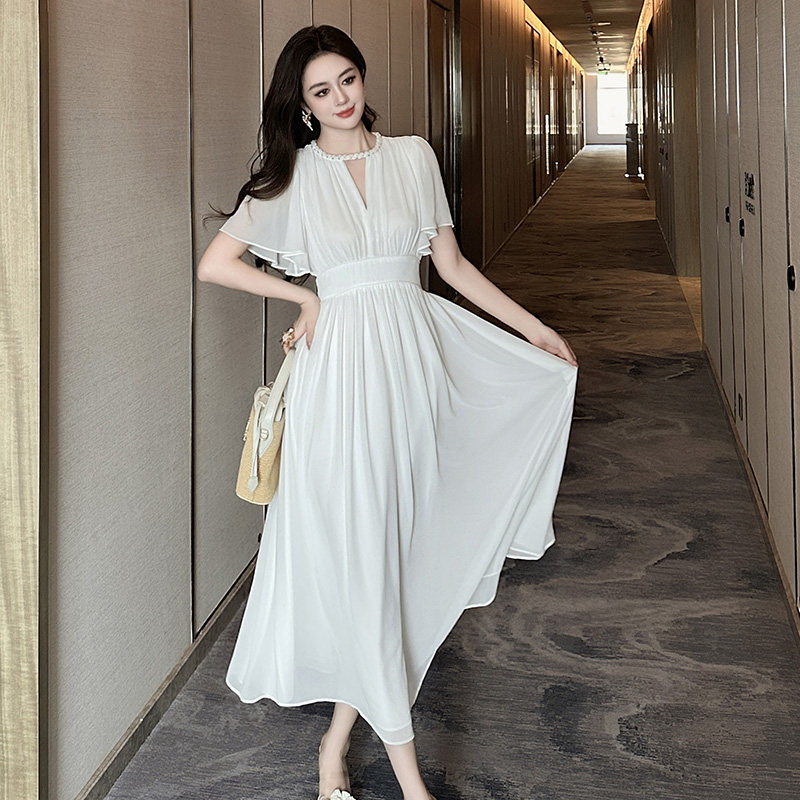 白色连衣裙女夏季新款仙气飘飘简单大方裙子轻奢高级感收腰长裙