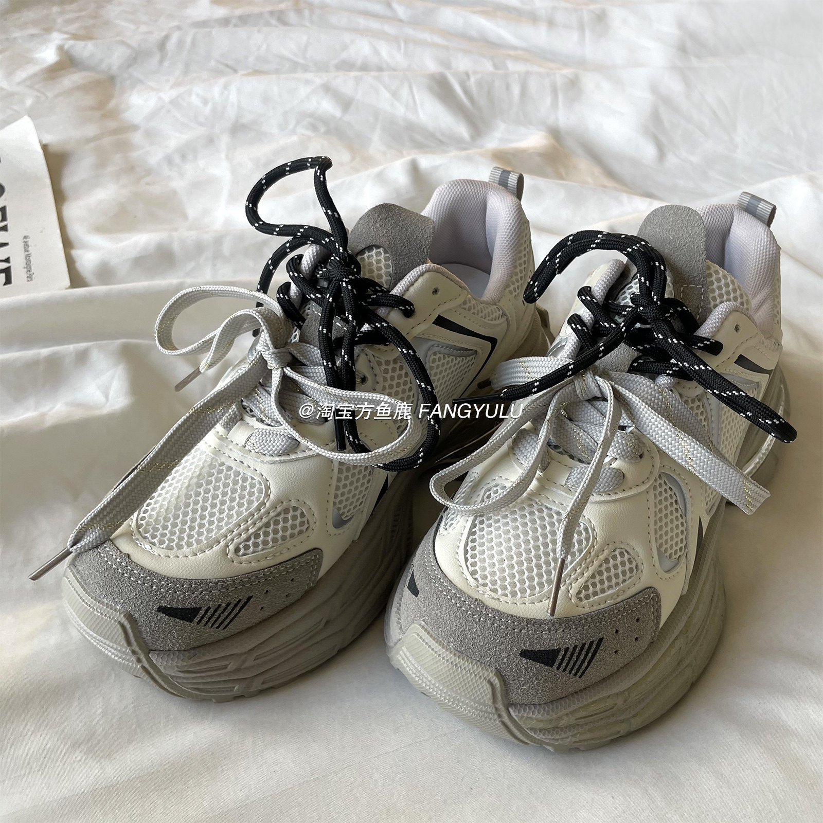方鱼鹿 网面透气增高老爹鞋女2024年秋冬街拍做旧脏脏运动鞋ins潮