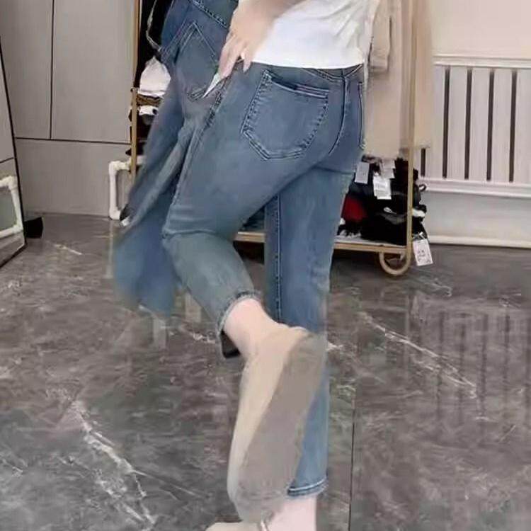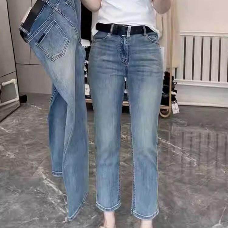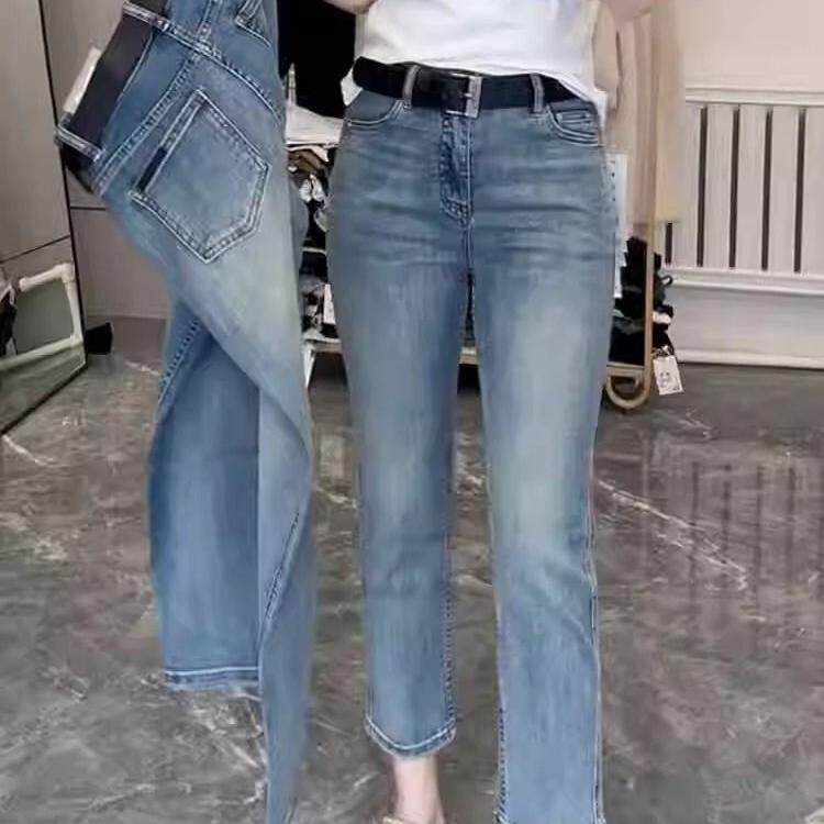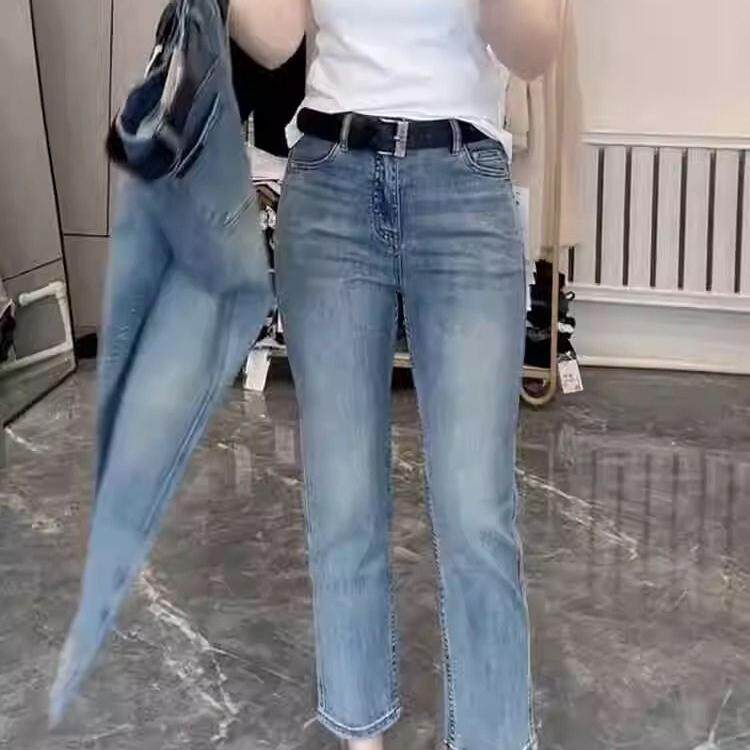 2026年春季新款高腰弹力直筒牛仔裤女大码梨型身材显瘦八分烟管裤