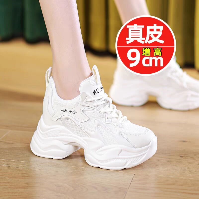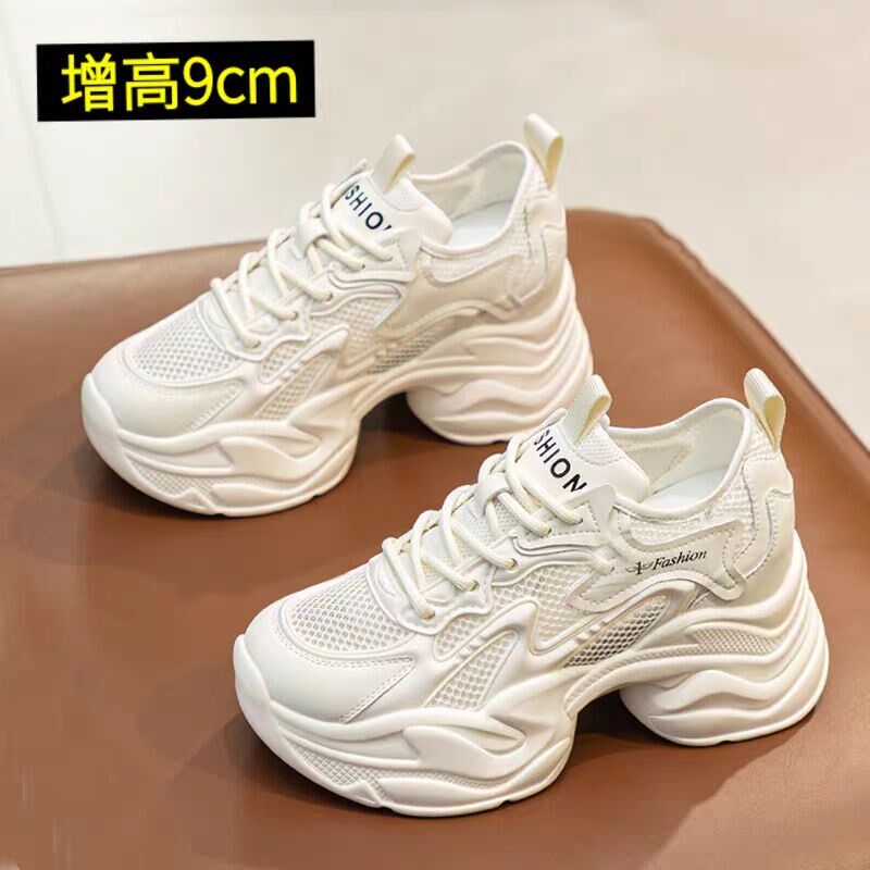 夏天10cm内增高老爹鞋厚底小个子女鞋2024新款网面透气运动小白鞋