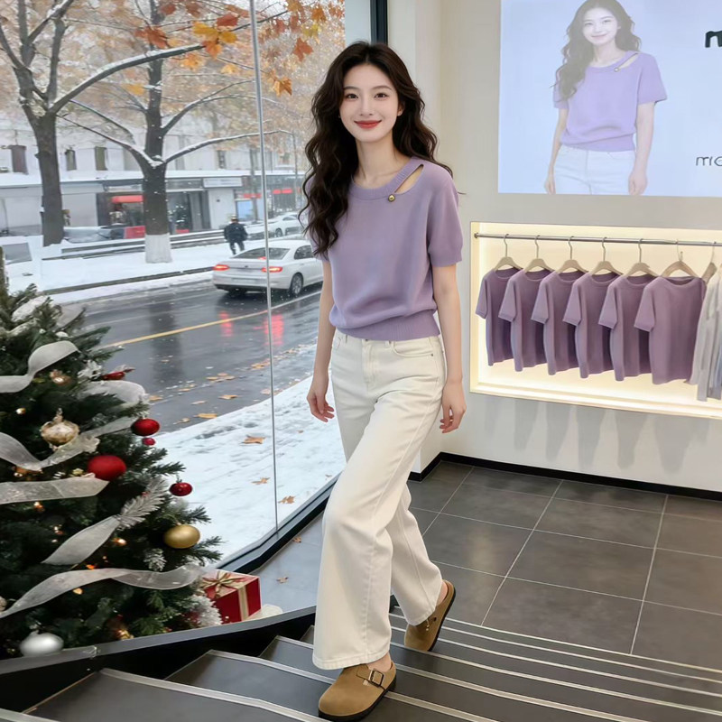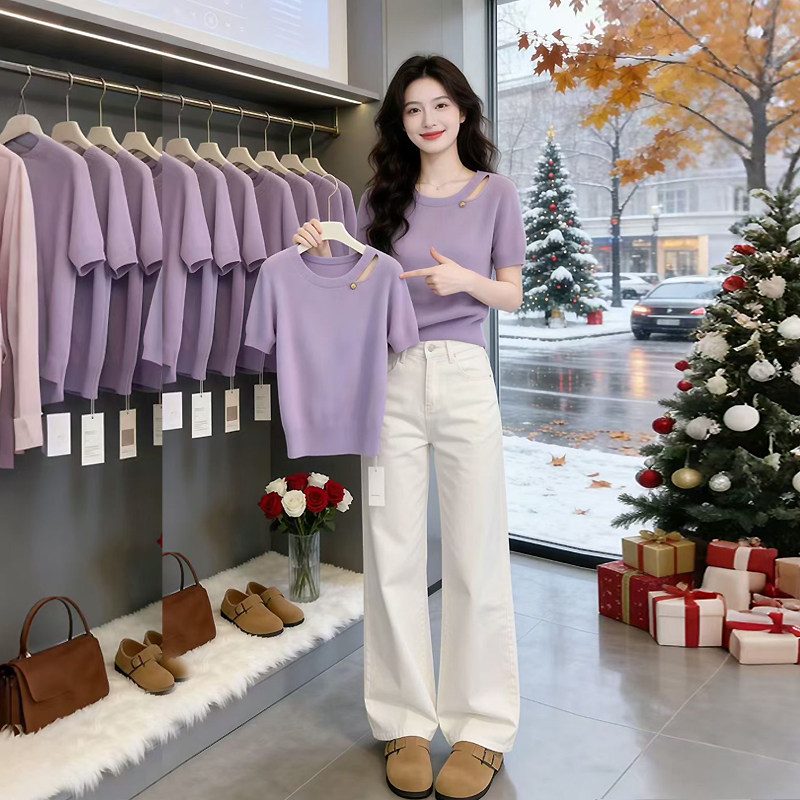 韩式超好看ootd穿搭一整套2026夏季新款针织衫上衣阔腿裤子套装