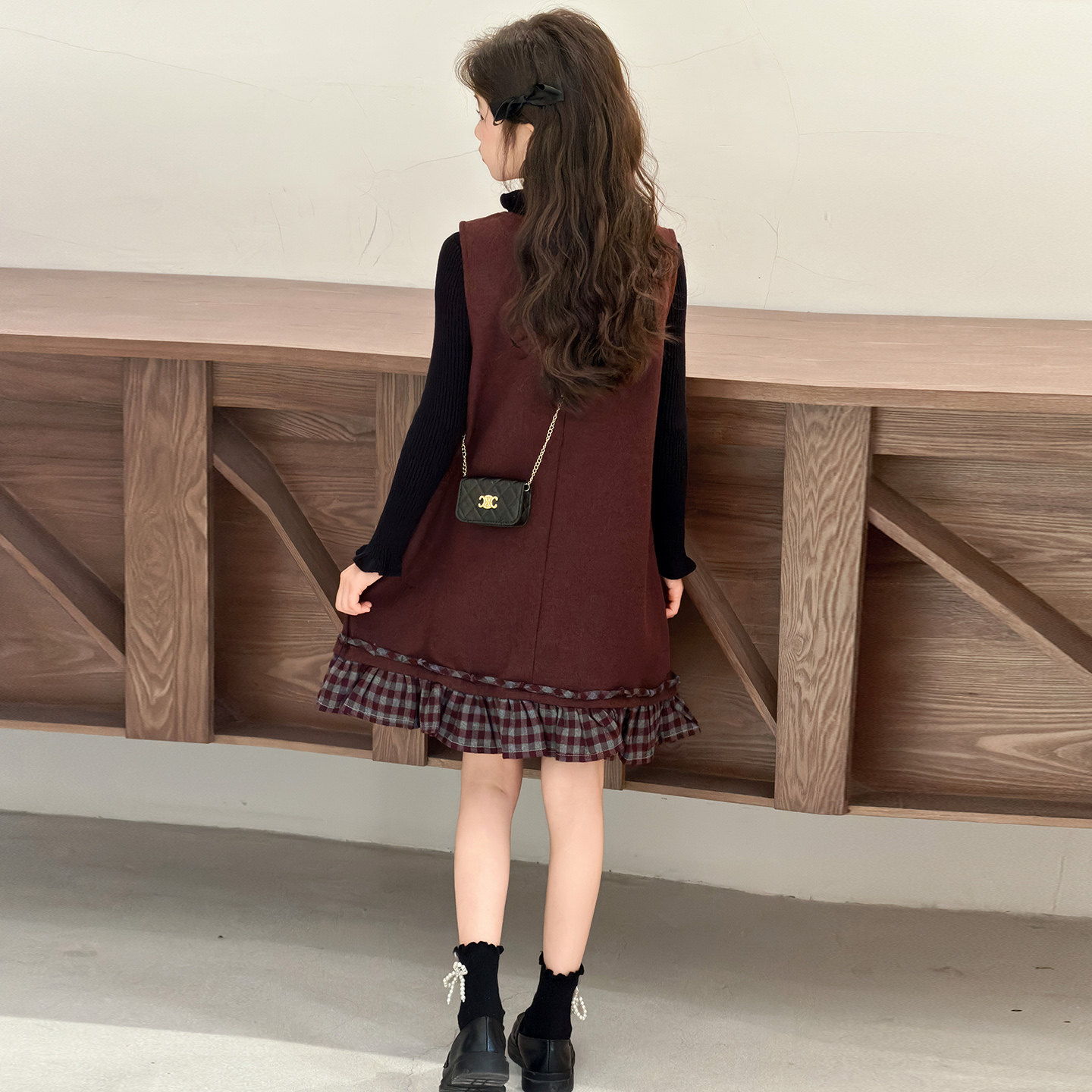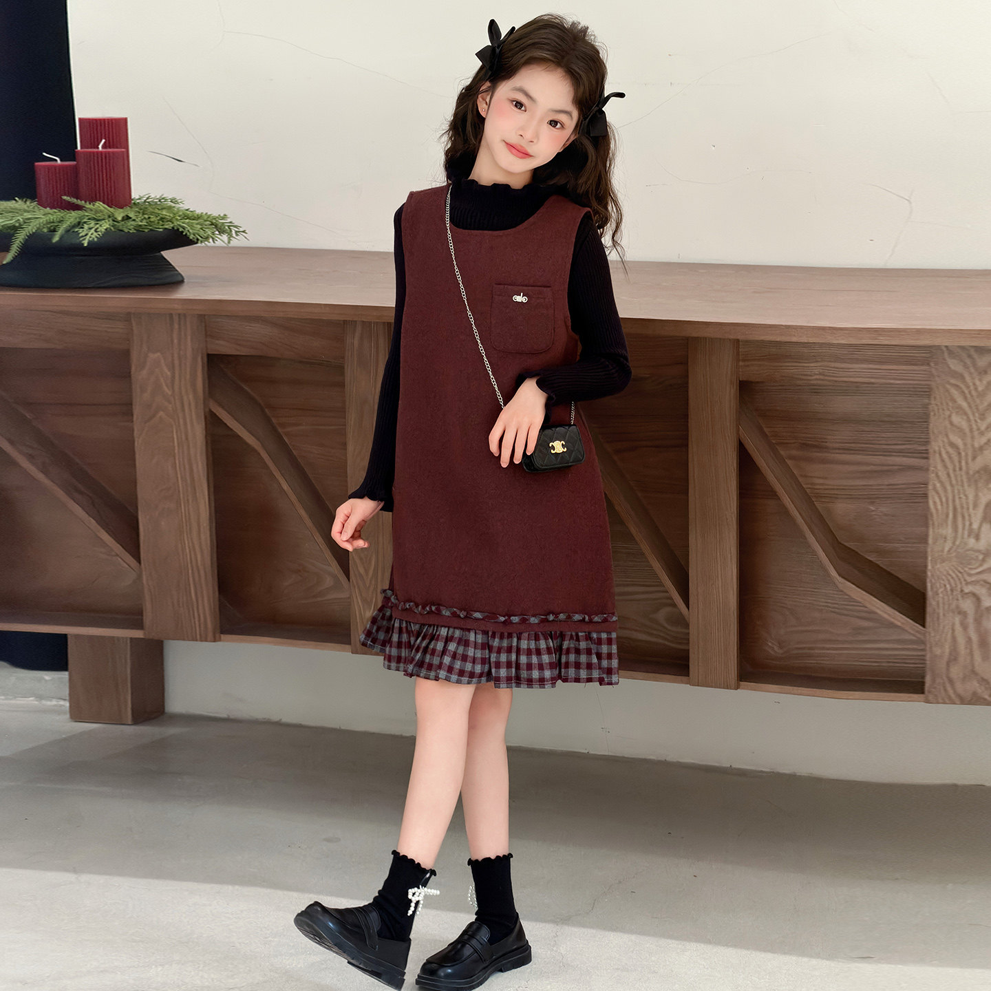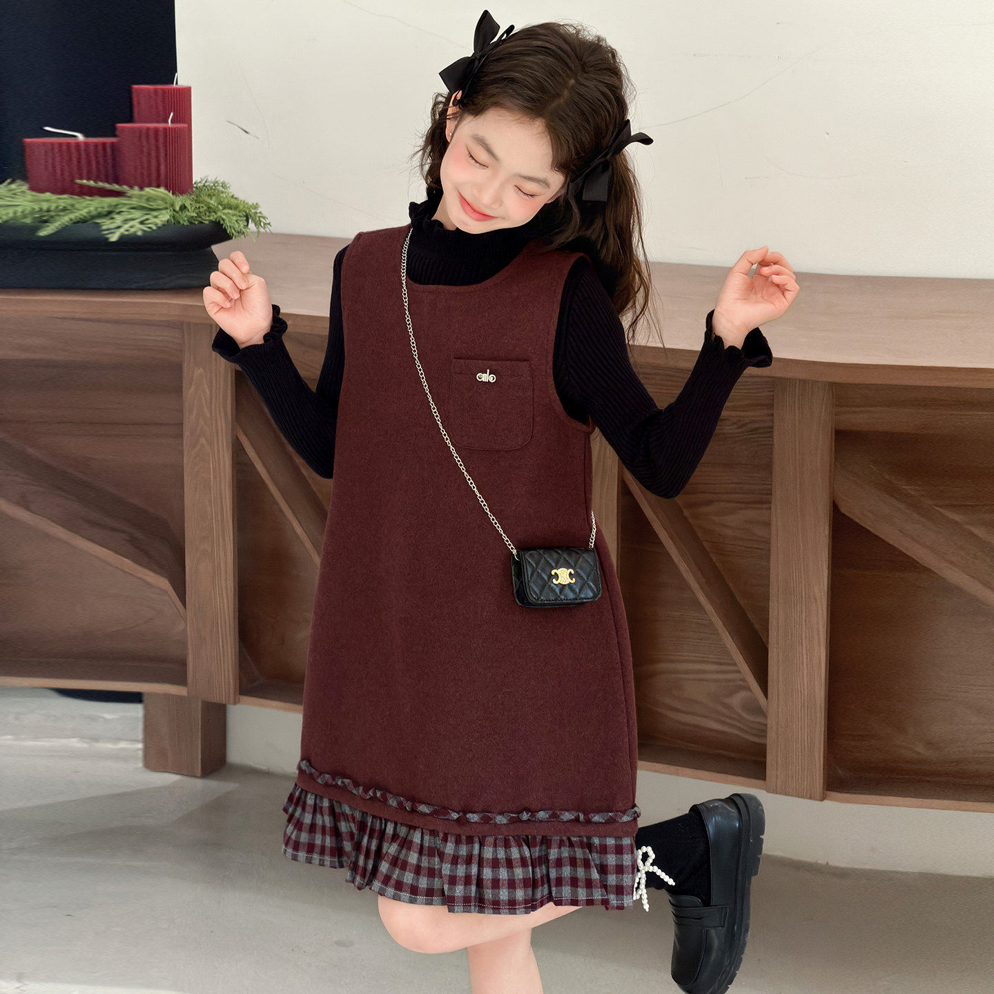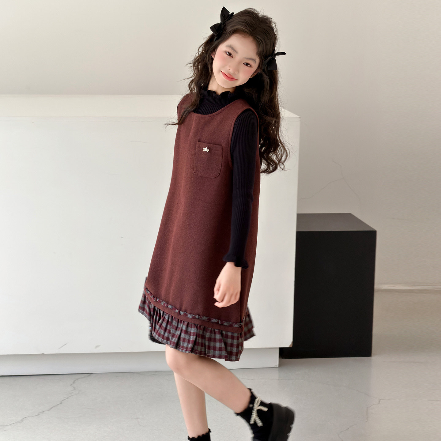 女童秋冬毛呢裙2026新款儿童红色加绒背心连衣裙中大童年服两件套