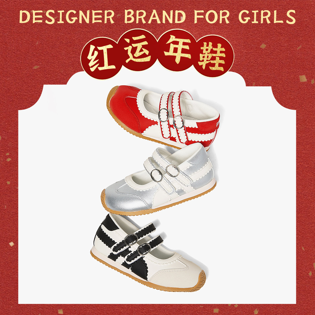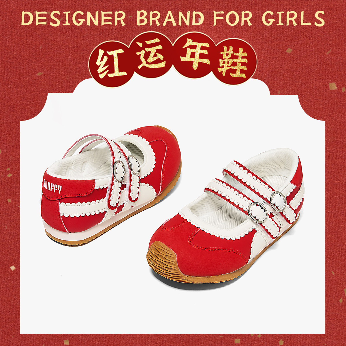 新年款|斯纳菲女童运动鞋2026春季新款红色德训鞋儿童软底休闲鞋
