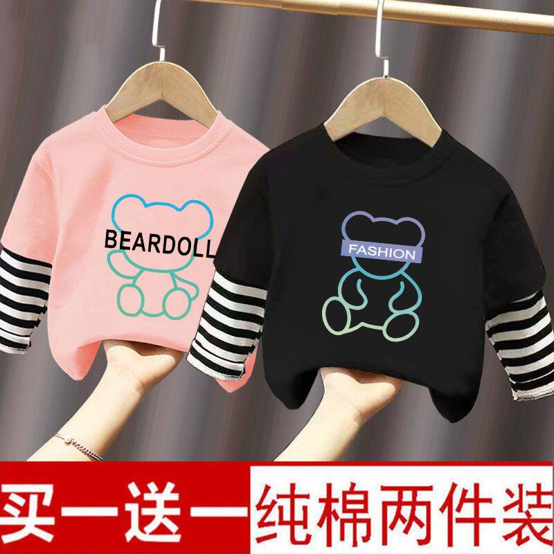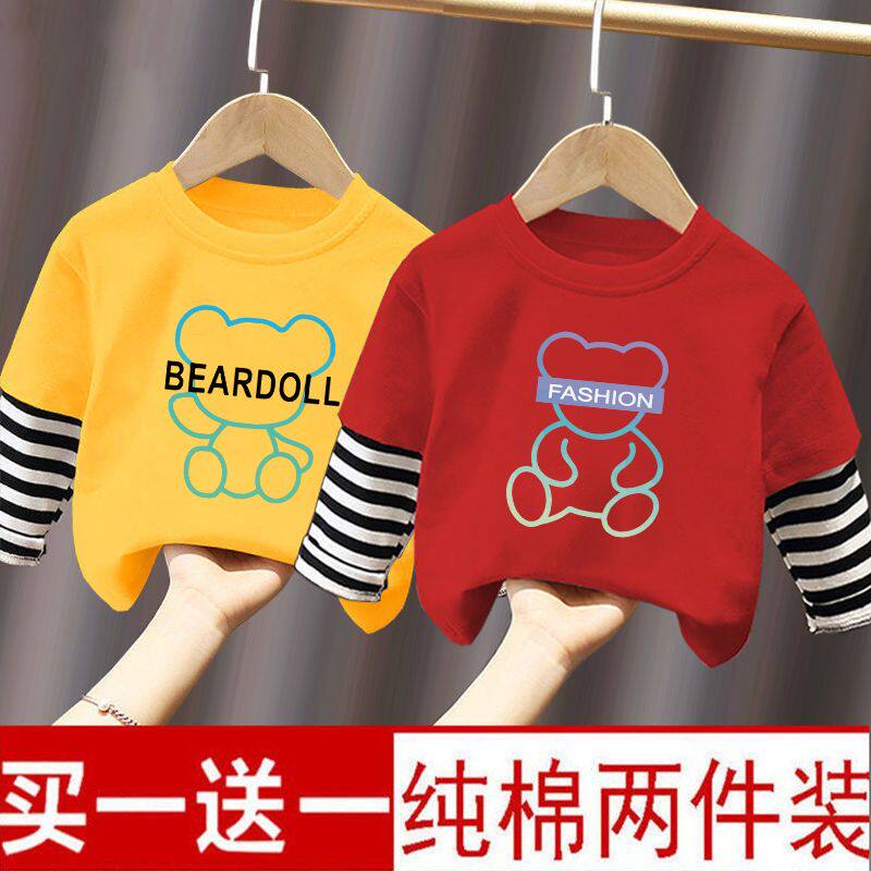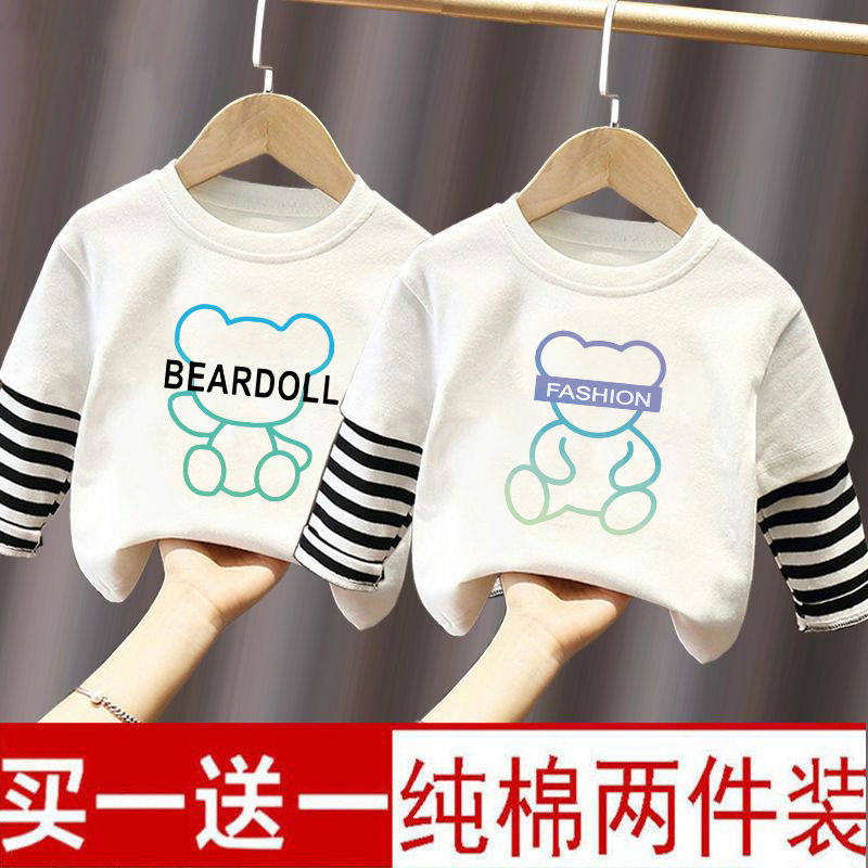 男童长袖t恤秋装2026新款儿童痞帅假两件上衣男孩洋气纯棉打底衫