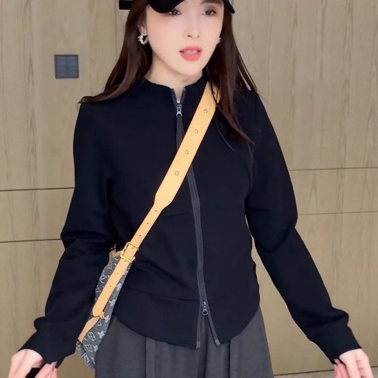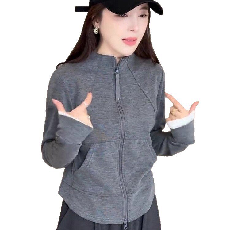 立领无帽短款卫衣女款春季2026新款爆款时尚洋气拉链外套上衣女