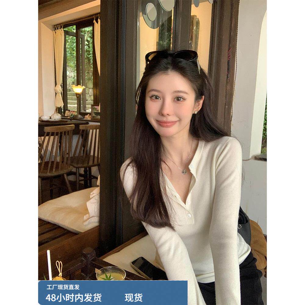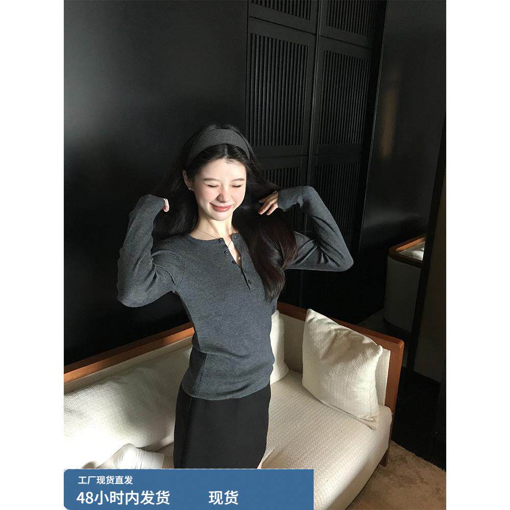 设计感小众打底针织女修身显瘦气质长袖内搭毛衣开衫上衣秋冬新款